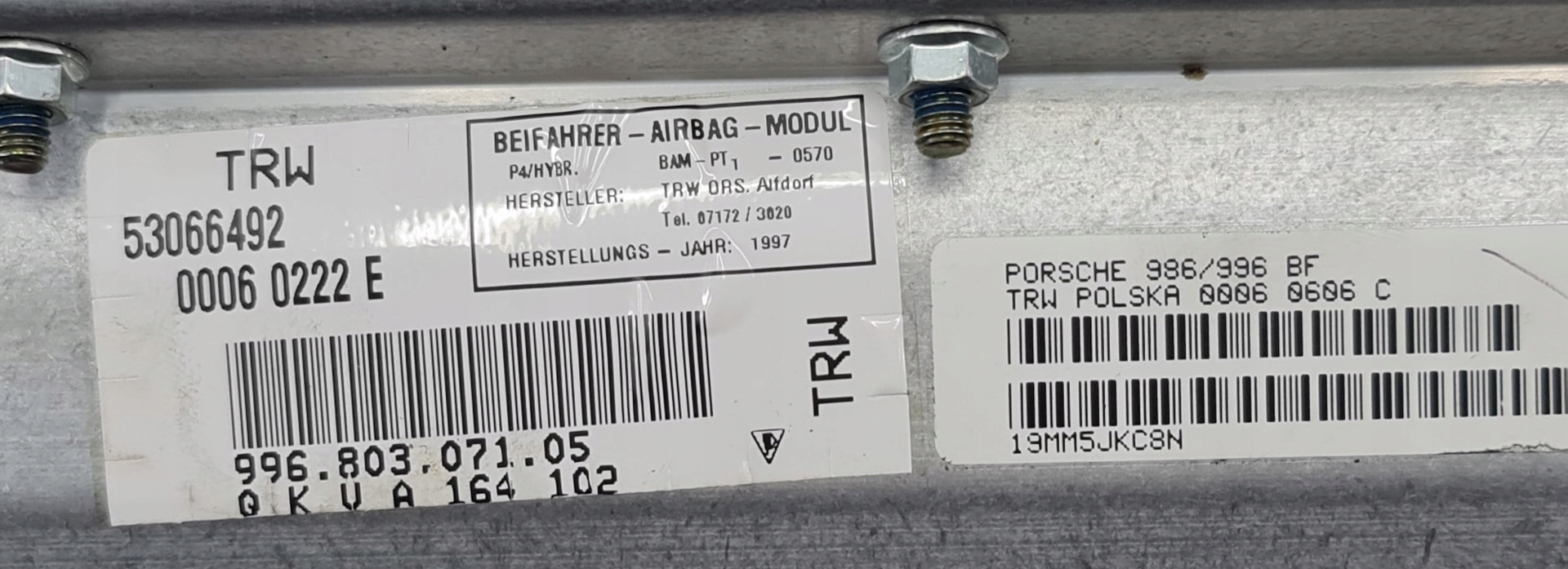 ZAPZA — уникальный маркетплейс запчастей автотоваров и услуг для физ и юр лиц. В каталоге маркетплейса ZAPZA представлены новые, б/у и восстановленные автозапчасти, для всех типов транспорта. Автодеталь подушка подушки безопасности пассажира PORSCHE BOXSTER 986 после демонтажа прошла проверку и готова к дальнейшей эксплуатации.