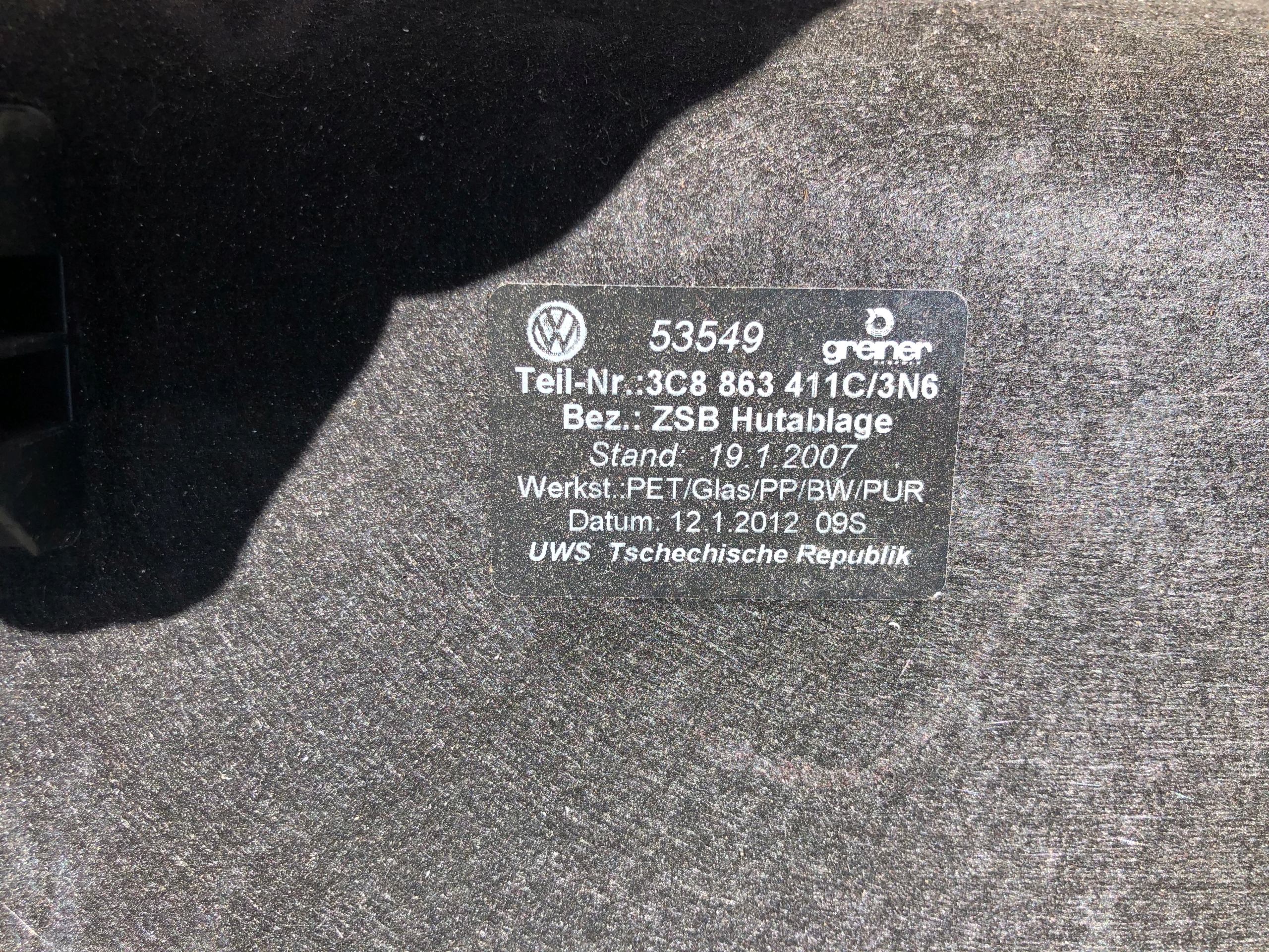 полка багажника vw CC 3C8863411C