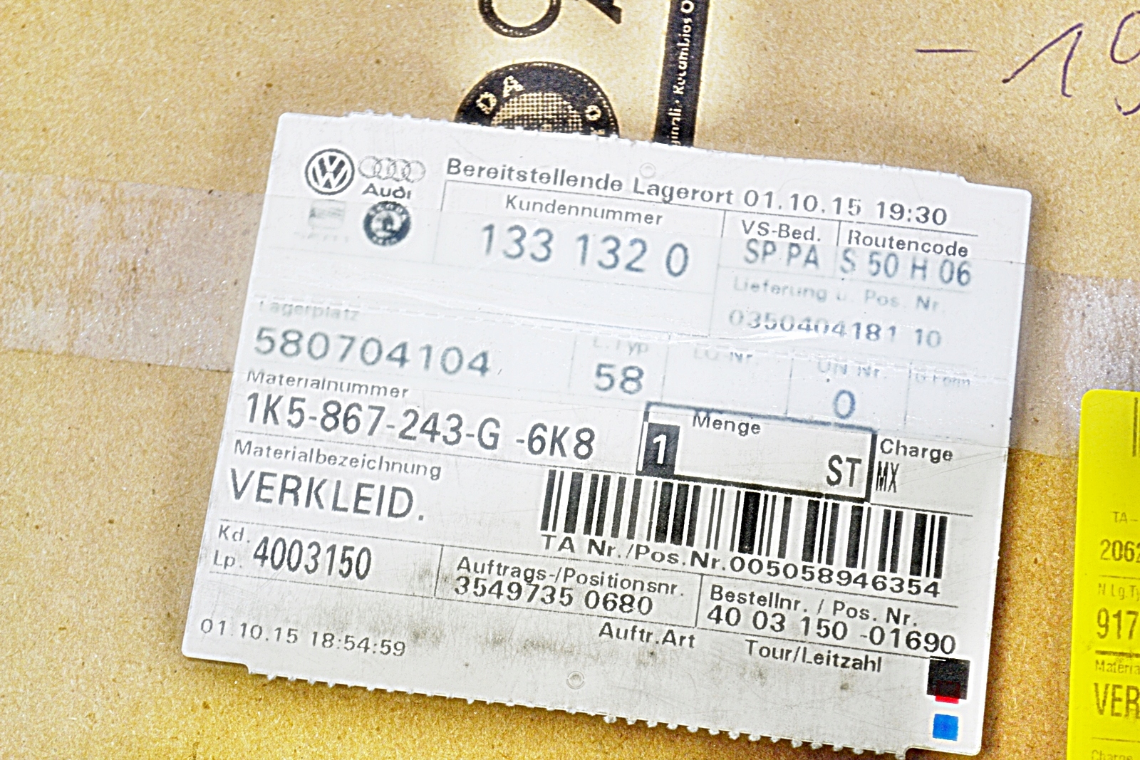 vw GOLF VI универсал защита левый внутреняя 1K5867243G