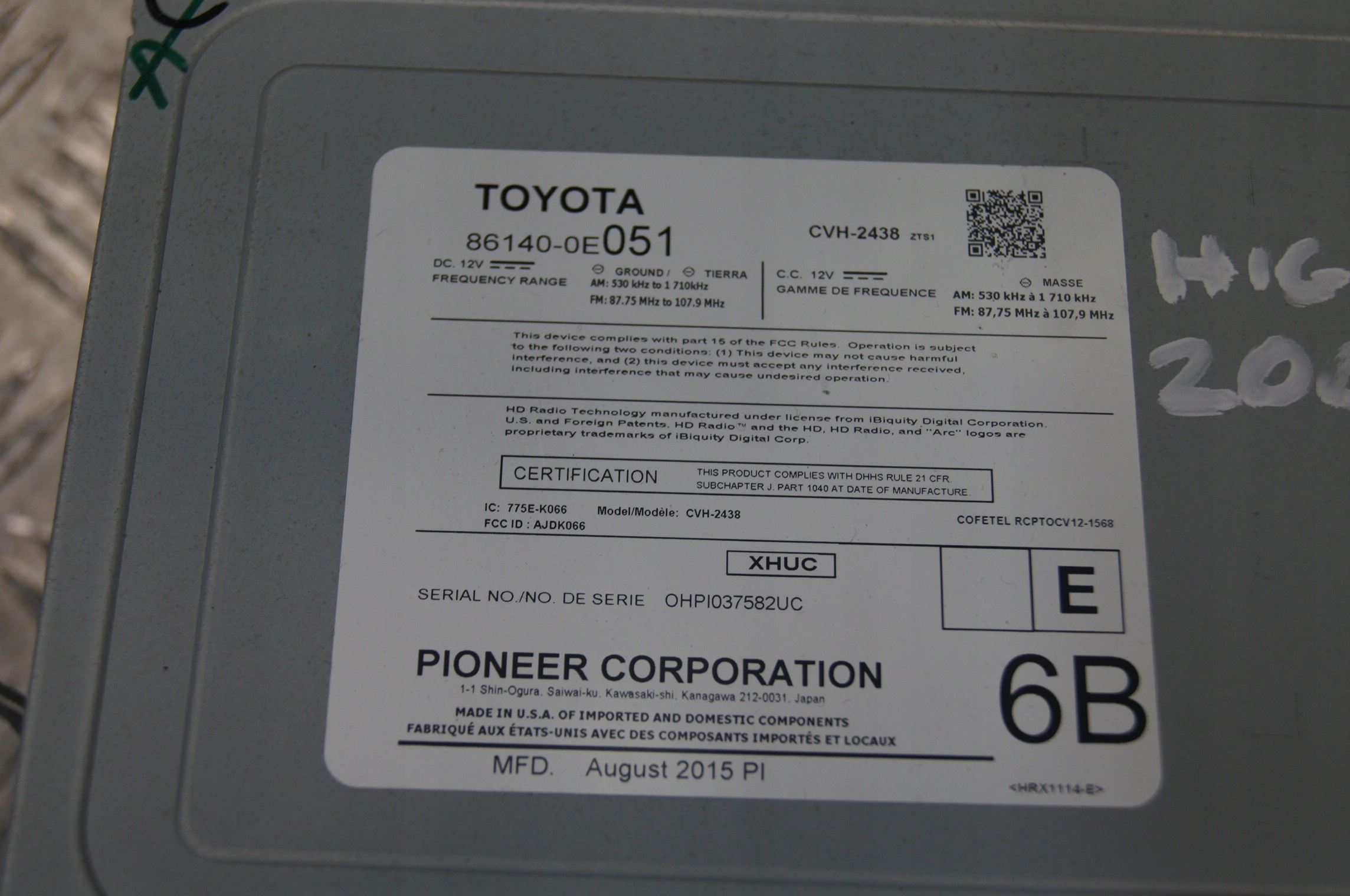 номер детали: TOYOTA HIGHLANDER 2015 америка радио