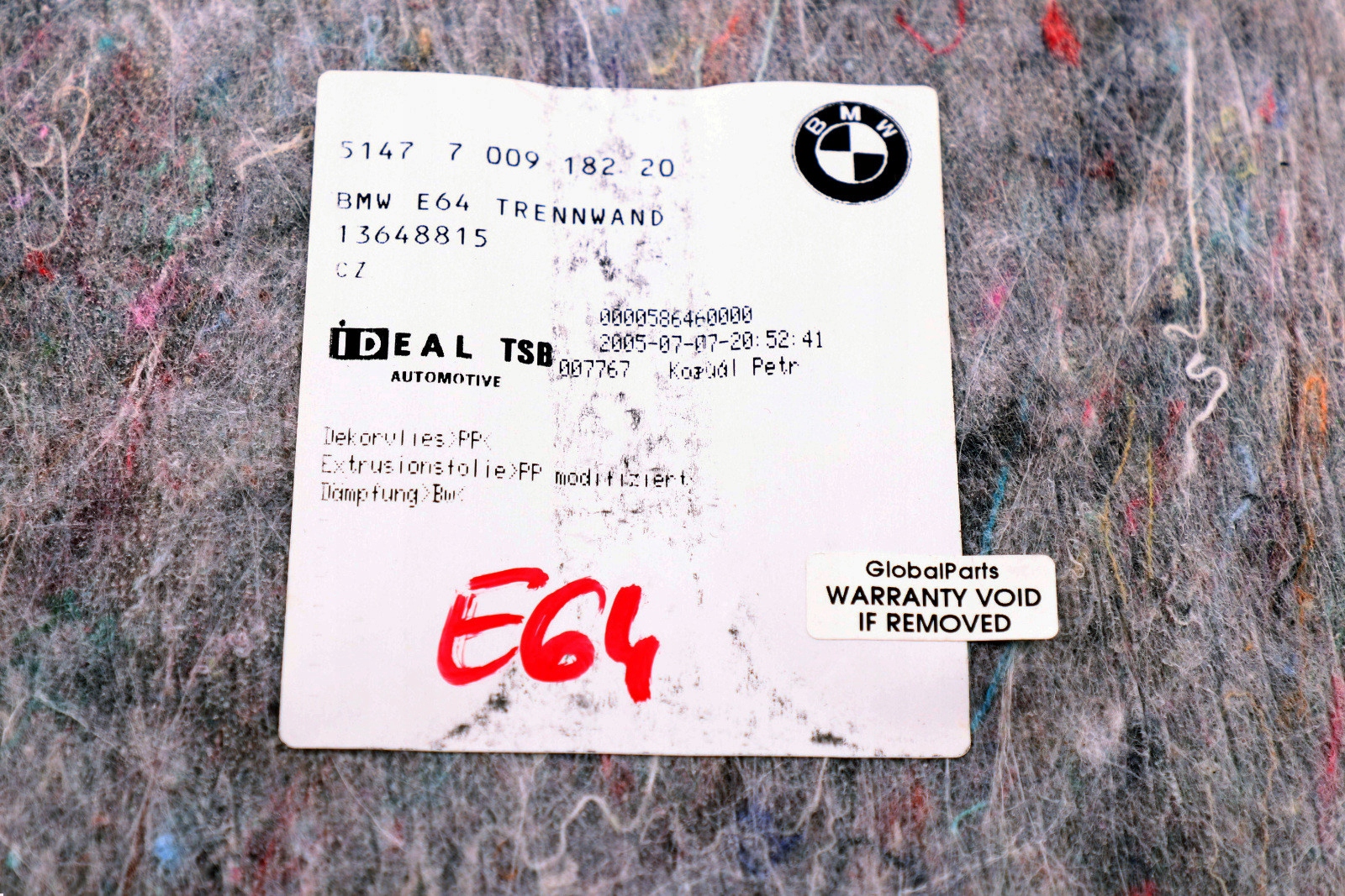 ZAPZA — уникальный маркетплейс запчастей автотоваров и услуг для физ и юр лиц. В каталоге маркетплейса ZAPZA представлены новые, б/у и восстановленные автозапчасти, для всех типов транспорта. Автодеталь BMW E64 защита багажника 7009182 после демонтажа прошла проверку и готова к дальнейшей эксплуатации.