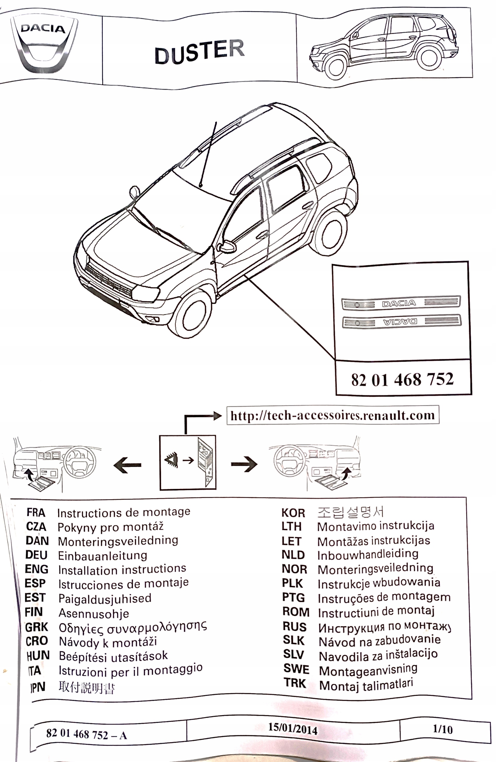 накладки порога серебро Dacia Duster oe