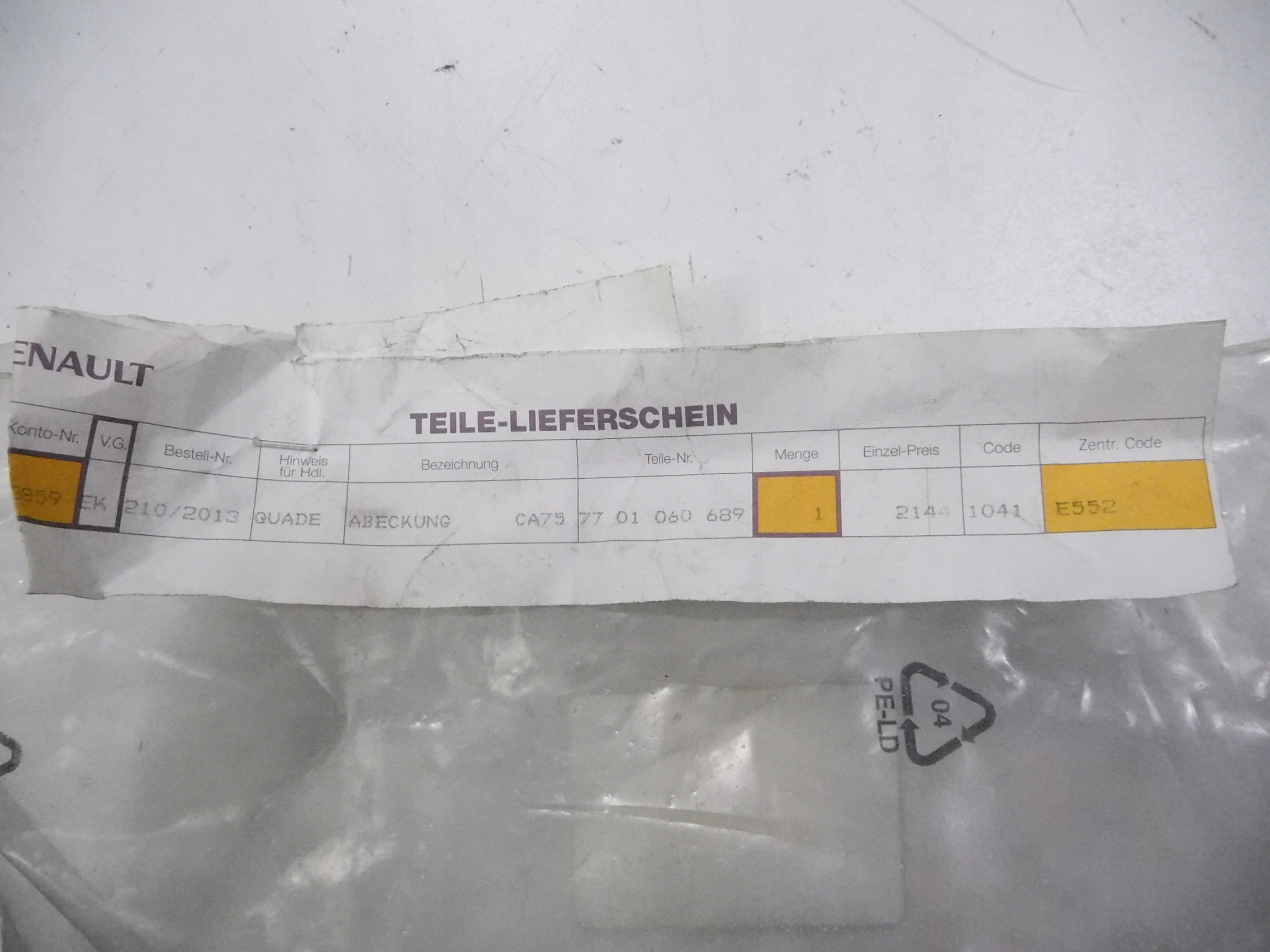 защита кресло renault MODUS oe 7701060689