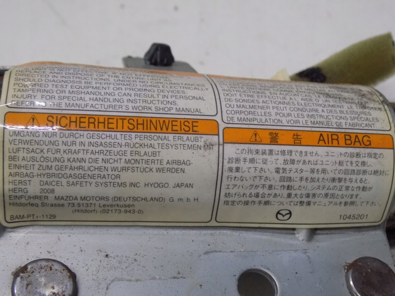 mazda 06-12 пиропатрон воздушная левый перед