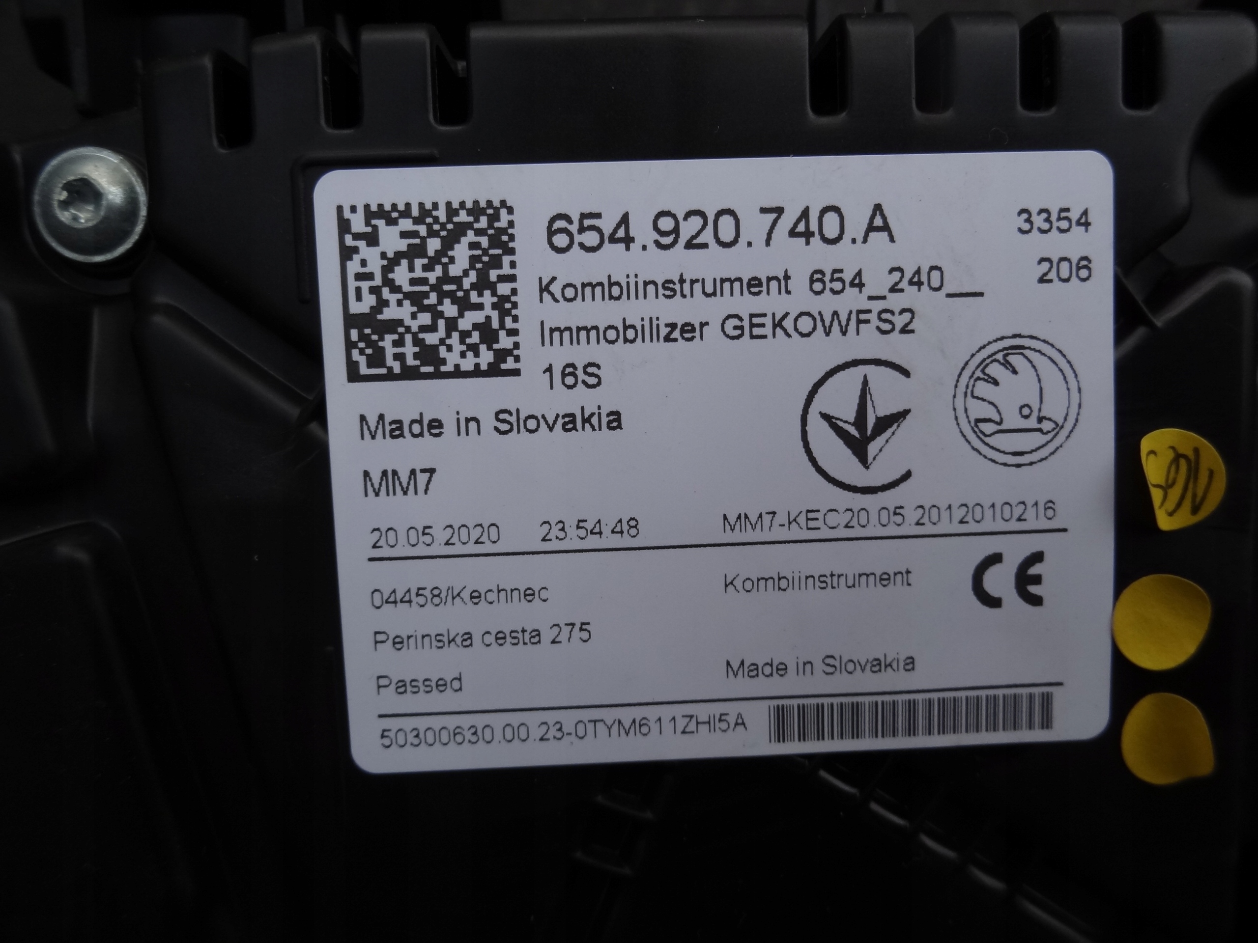 спидометр SKODA oe 654920740A