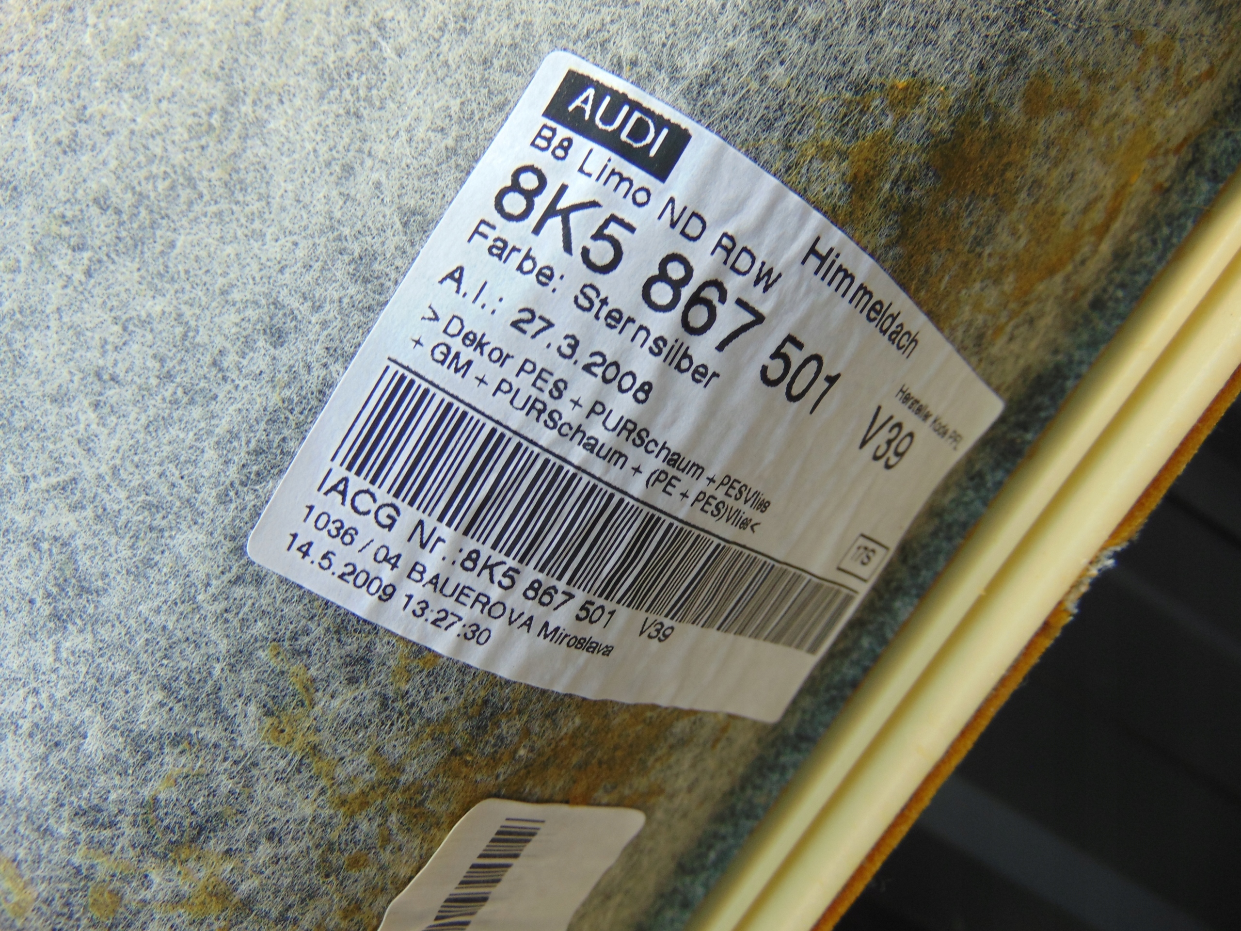 потолок Audi A4 B8 седан