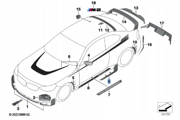 защита порога m правая M2 G87 Carbon 51195A44DE2