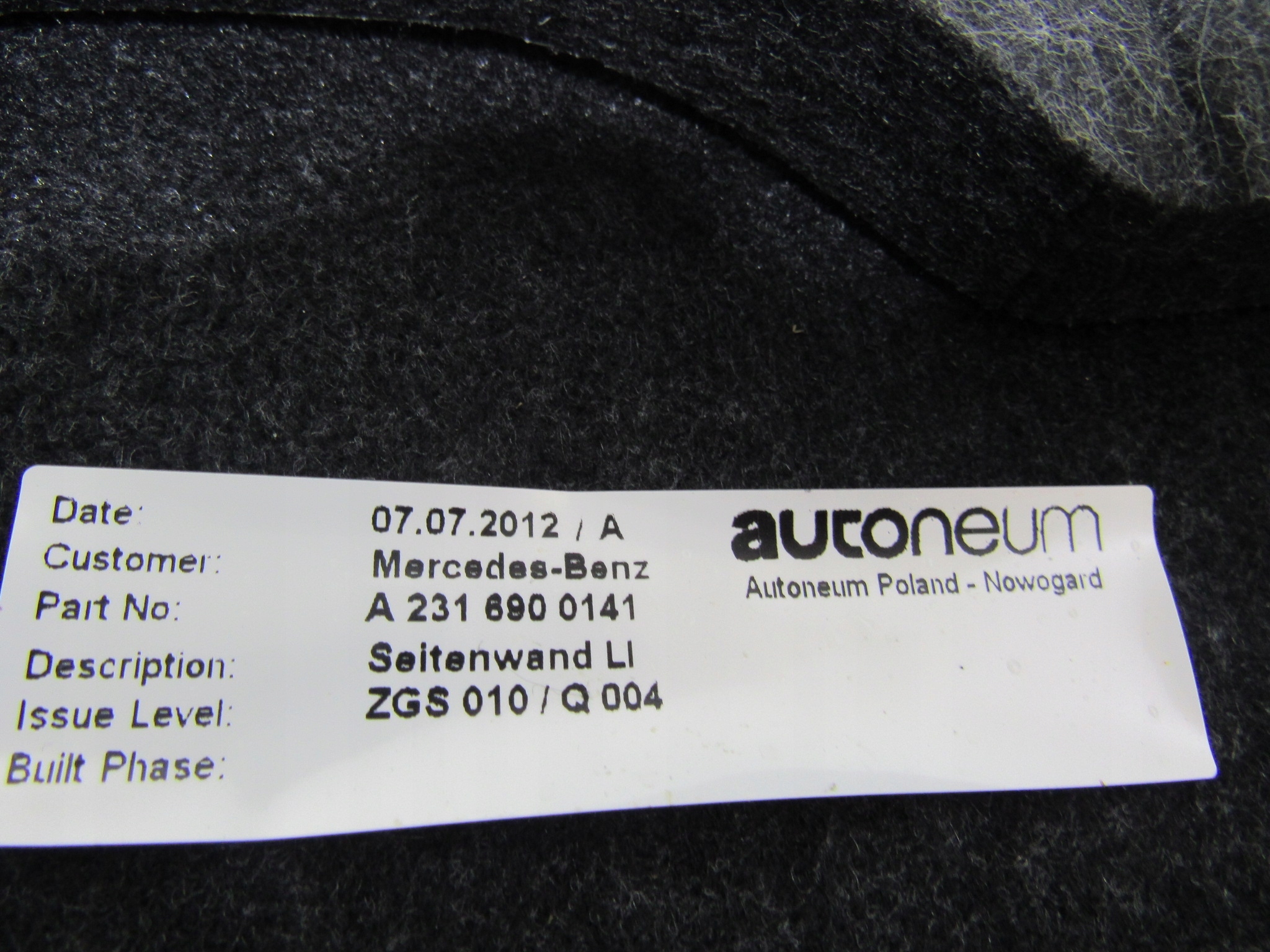 MERCEDES SL W231 R231 231 карта дверная защита обивка багажника лп A2316900141