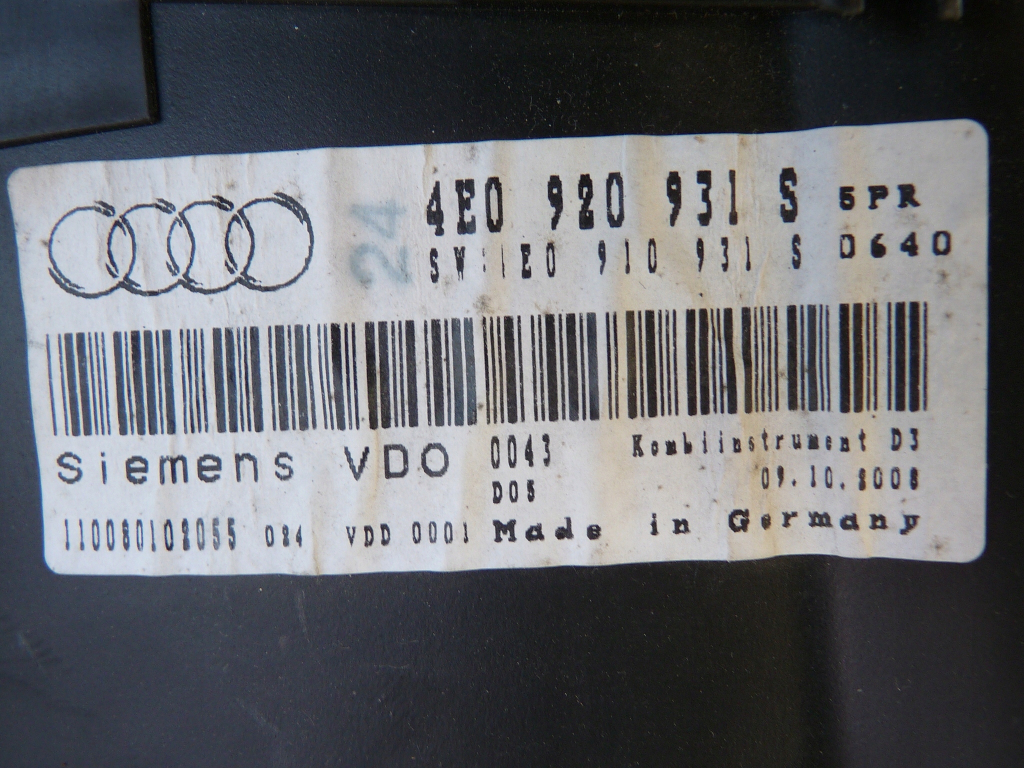 Audi A8 D3 РЕСТАЙЛИНГ 4.2 tdi спидометр часы 4E0920931S