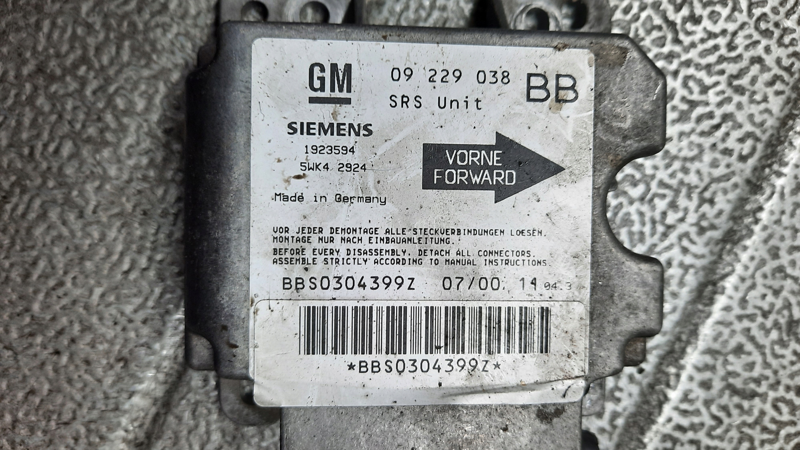 ZAPZA — уникальный маркетплейс запчастей автотоваров и услуг для физ и юр лиц. В каталоге маркетплейса ZAPZA представлены новые, б/у и восстановленные автозапчасти, для всех типов транспорта. Автодеталь подушки безопасности opel CORSA b 1.5d 00R 09229038 после демонтажа прошла проверку и готова к дальнейшей эксплуатации.