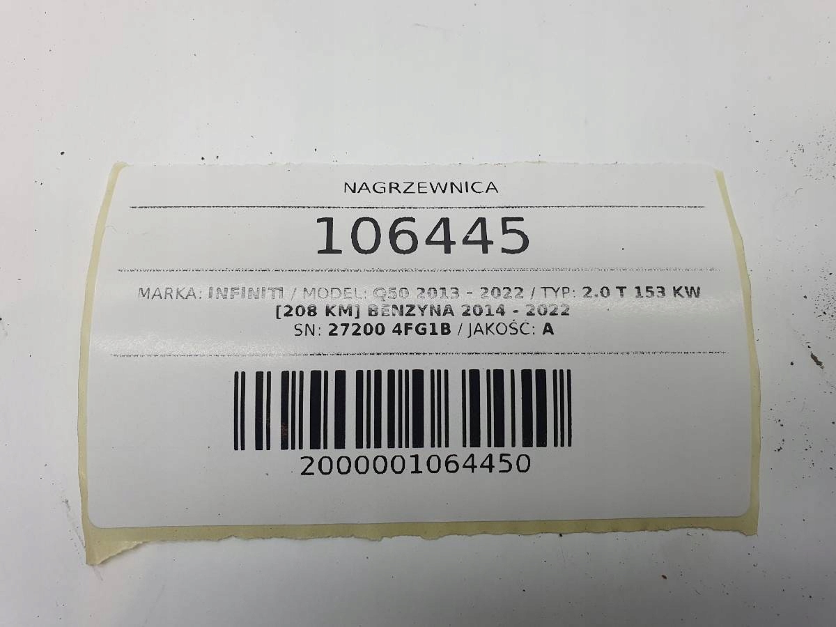 ZAPZA — уникальный маркетплейс запчастей автотоваров и услуг для физ и юр лиц. В каталоге маркетплейса ZAPZA представлены новые, б/у и восстановленные автозапчасти, для всех типов транспорта. Автодеталь радиатор отопителя 27200 4FG1B INFINITI Q50 европа после демонтажа прошла проверку и готова к дальнейшей эксплуатации.