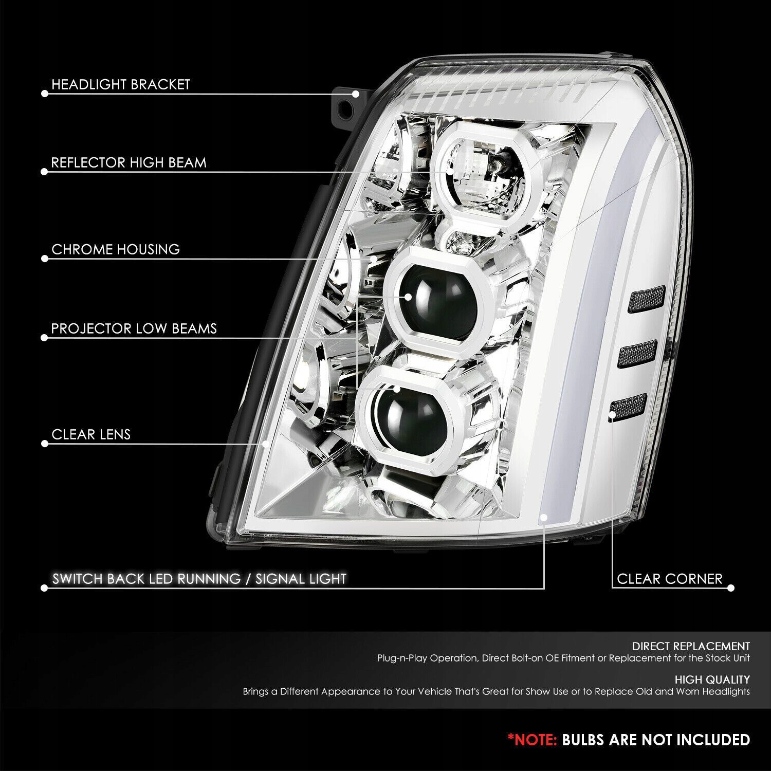 фары led комплект хром правая + левая Cadillac ESCALADE 07-14