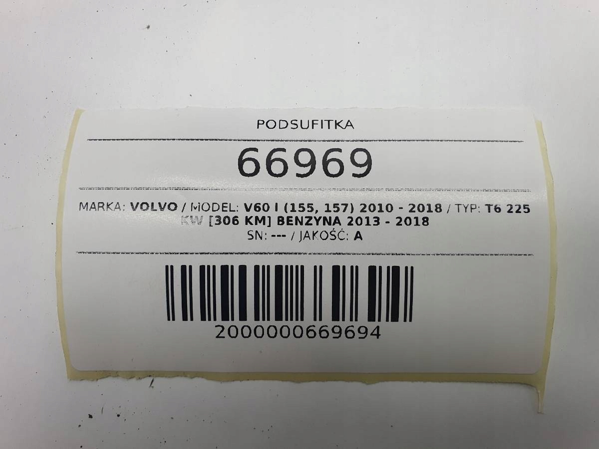 ZAPZA — уникальный маркетплейс запчастей автотоваров и услуг для физ и юр лиц. В каталоге маркетплейса ZAPZA представлены новые, б/у и восстановленные автозапчасти, для всех типов транспорта. Автодеталь потолок черный люк в крыше volvo V60 и 2697902 после демонтажа прошла проверку и готова к дальнейшей эксплуатации.