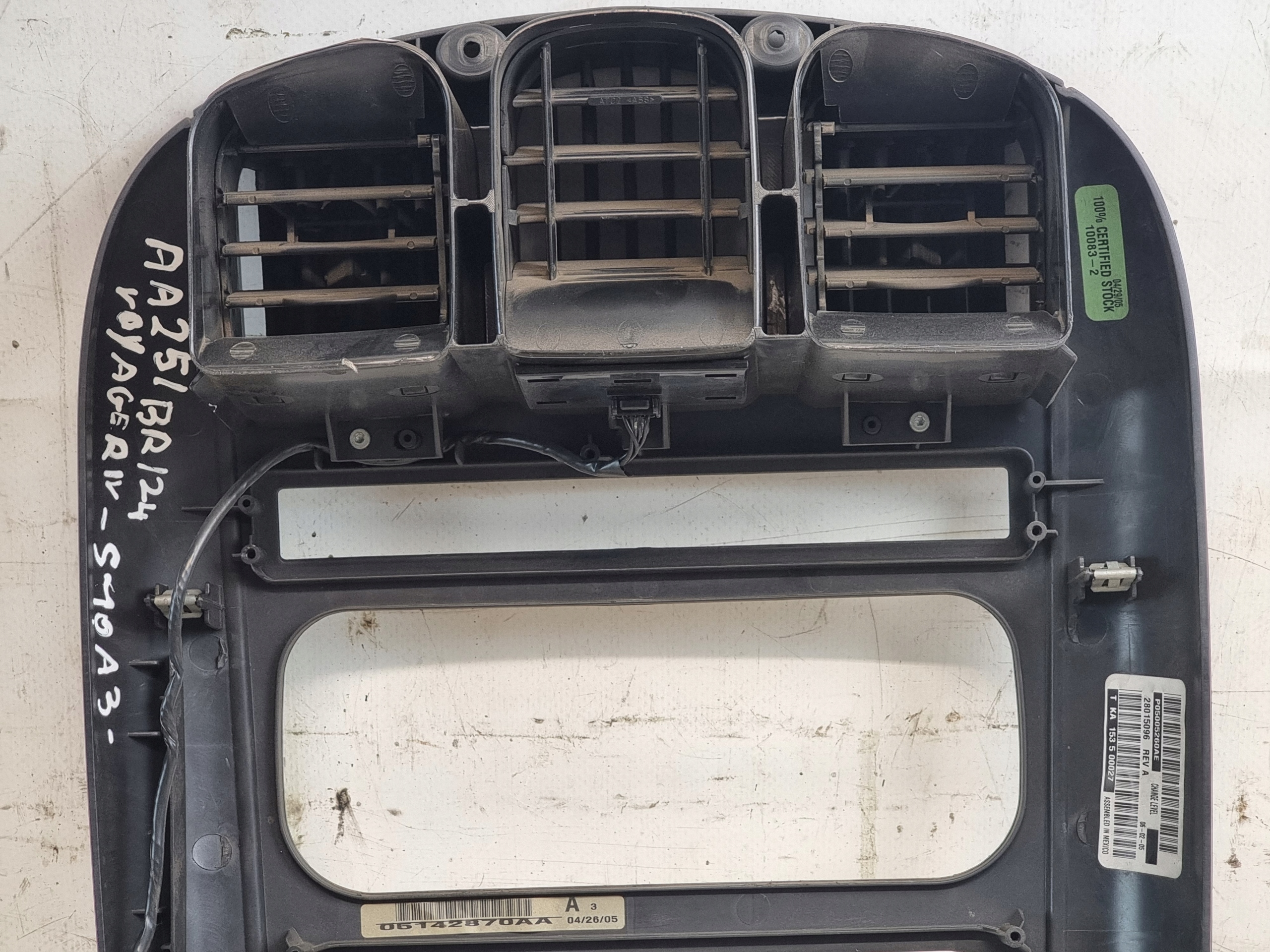 ZAPZA — уникальный маркетплейс запчастей автотоваров и услуг для физ и юр лиц. В каталоге маркетплейса ZAPZA представлены новые, б/у и восстановленные автозапчасти, для всех типов транспорта. Автодеталь рамка консоли радио решетки потока воздуха CHRYSLER Voyager IV после демонтажа прошла проверку и готова к дальнейшей эксплуатации.