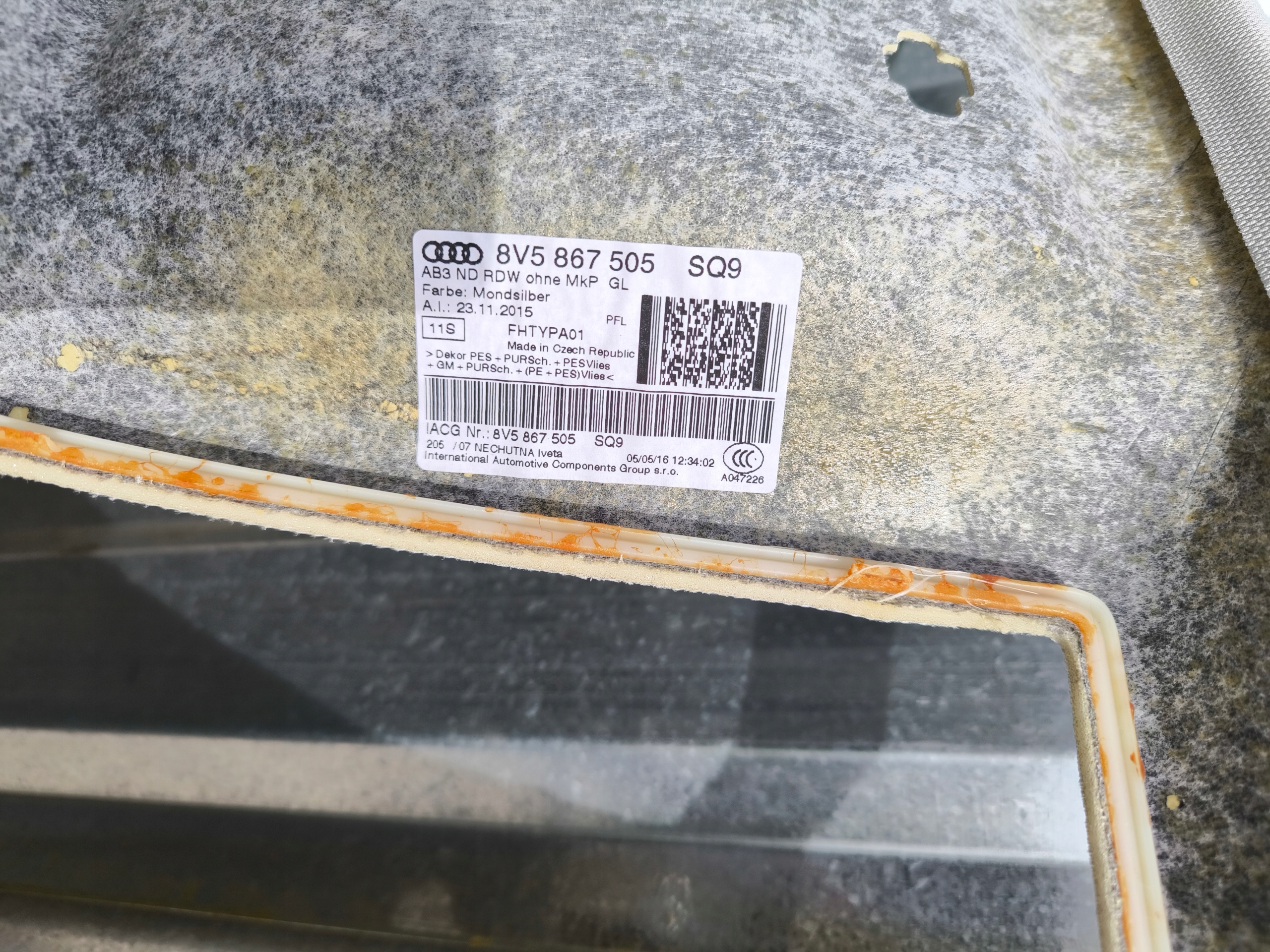 потолок Audi A3 8V седан 8V5867505 SQ9