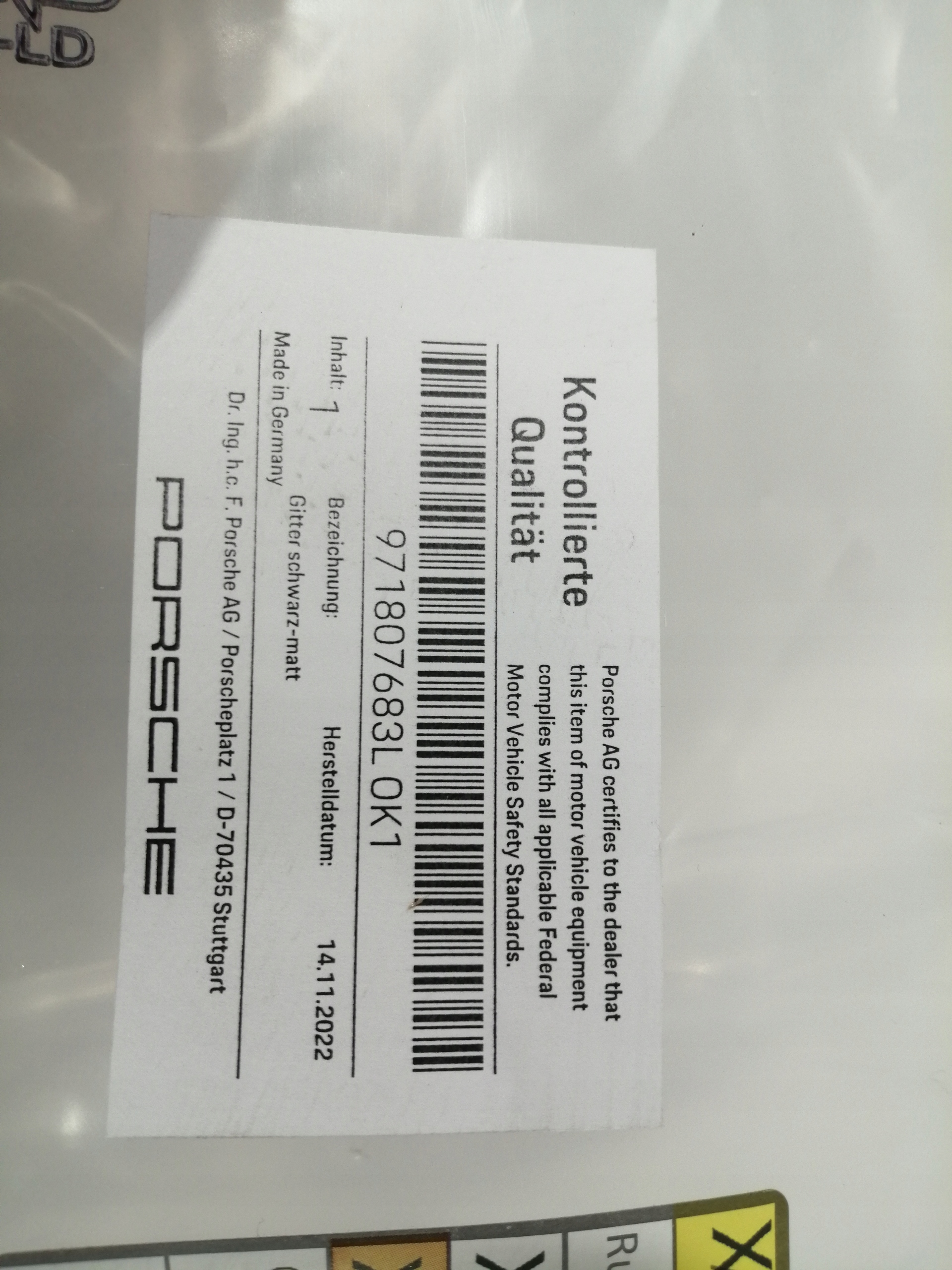 решетка радиатора перед черный oe PORSCHE PANAMERA 971 971807683LOK1
