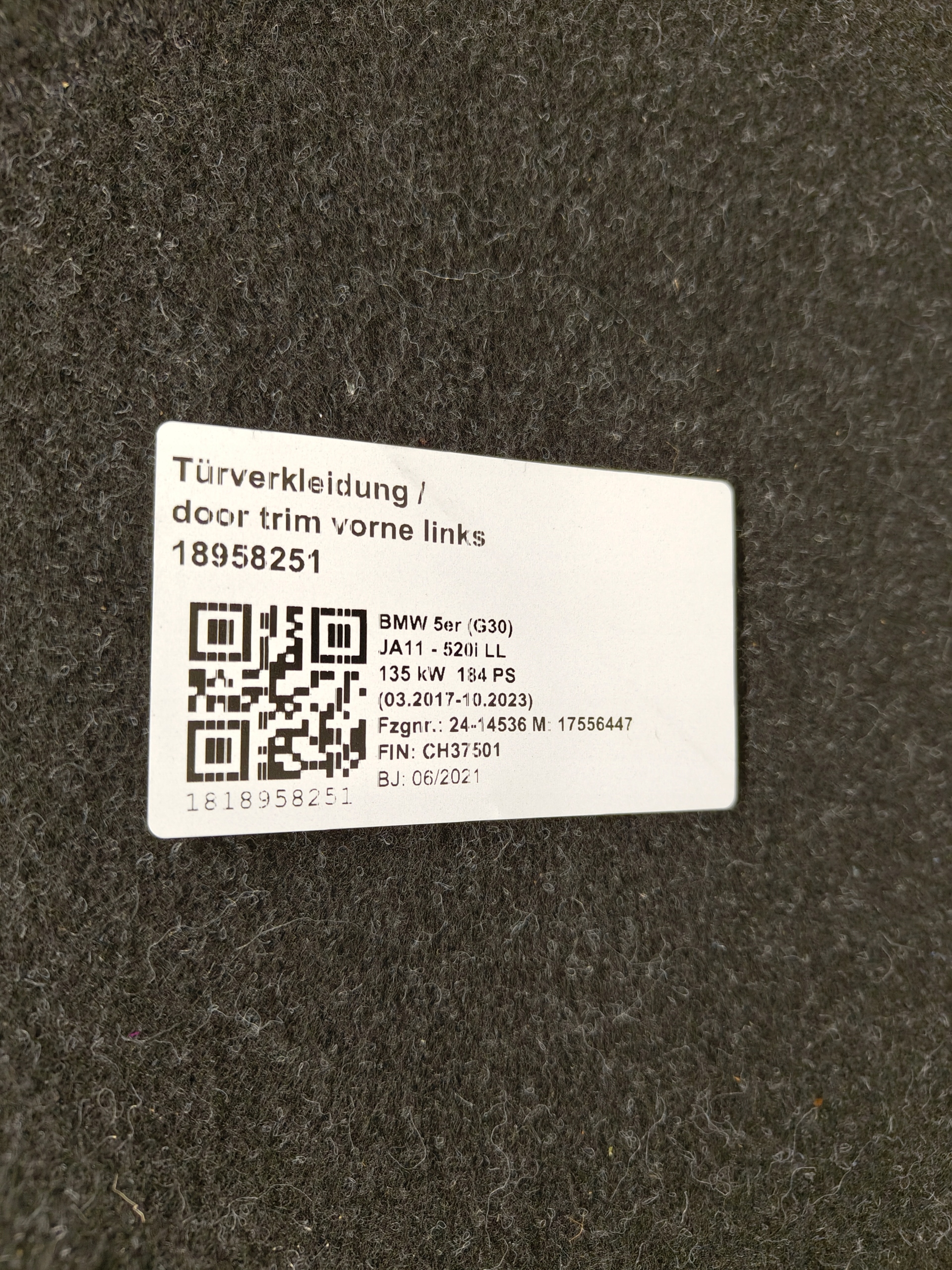 BMW 5 G30 полка зад обивка багажника 7373562
