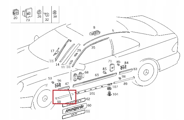 MERCEDES W208 прокладка порога перед левый оригинал