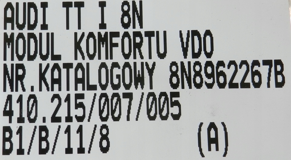 ZAPZA — уникальный маркетплейс запчастей автотоваров и услуг для физ и юр лиц. В каталоге маркетплейса ZAPZA представлены новые, б/у и восстановленные автозапчасти, для всех типов транспорта. Автодеталь блок комфорта Audi тт и 8N 8N8962267B после демонтажа прошла проверку и готова к дальнейшей эксплуатации.