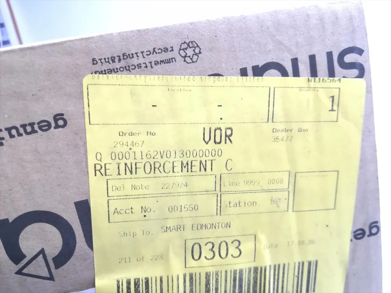 SMART рамка 1999 Купе 0001162V013 (98-04)