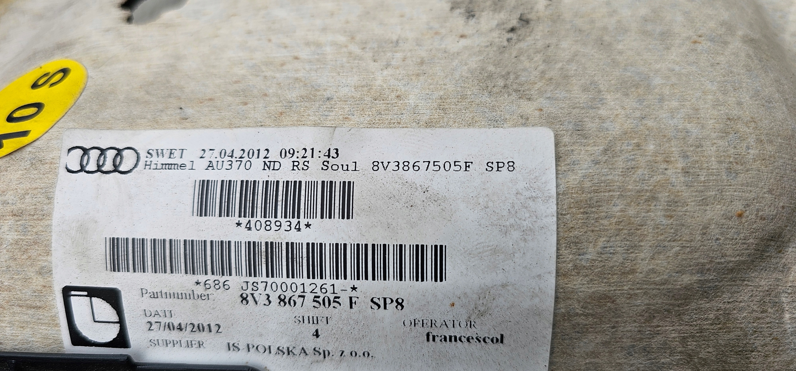 Audi A3 8V 3d потолок европа 8V3867505F