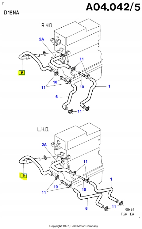 патрубок нагреватель FORD 1990-1995 oe 6484701