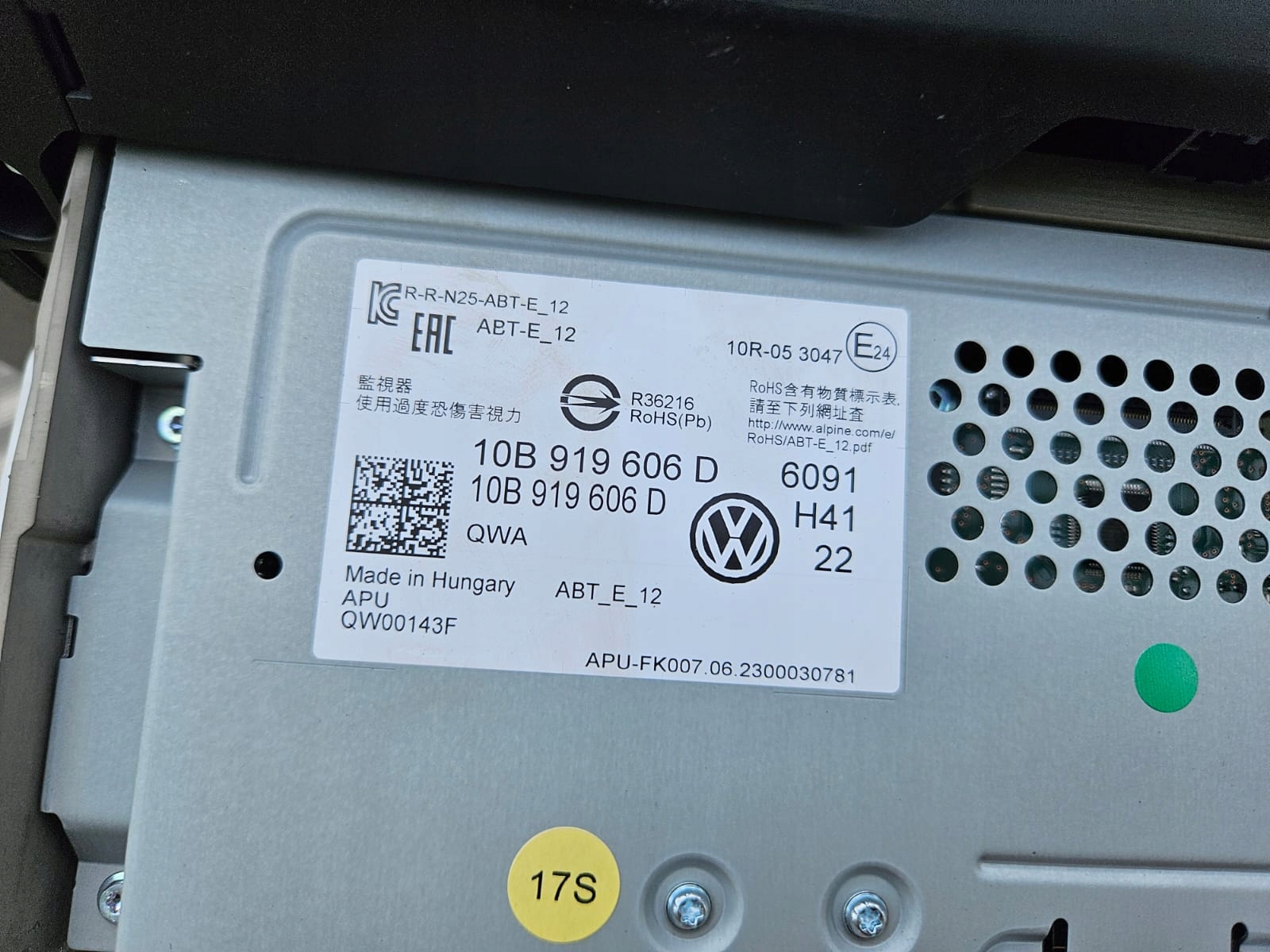 volkswagen ID3 дисплей 10B919606D