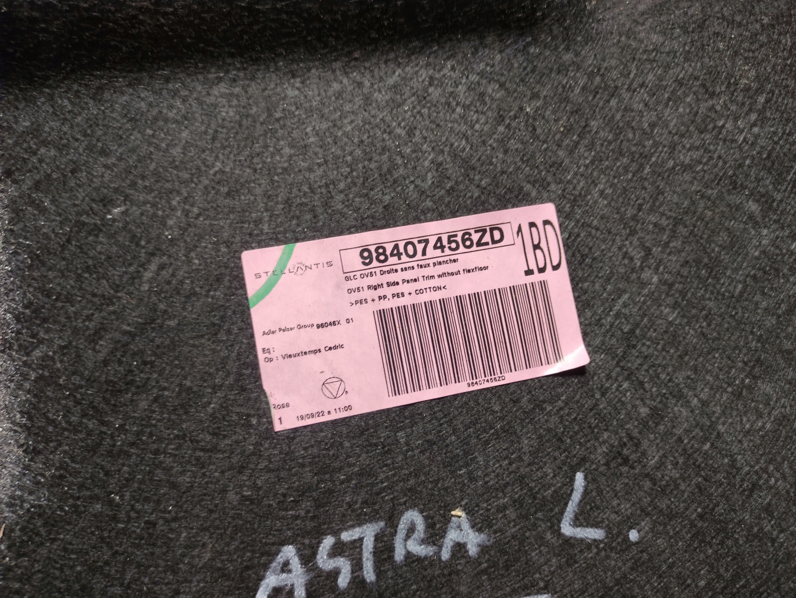 opel Astra л VI карта дверная багажника задний правый 98407456ZD хэтчбек HB