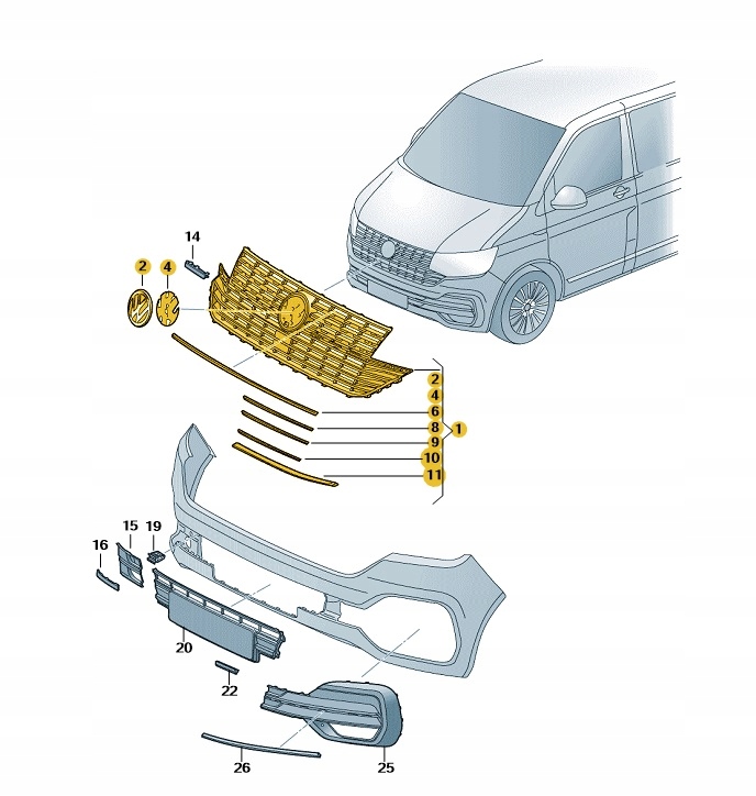 решетка радиатора volkswagen transporter oe: 7LA853651CLDB