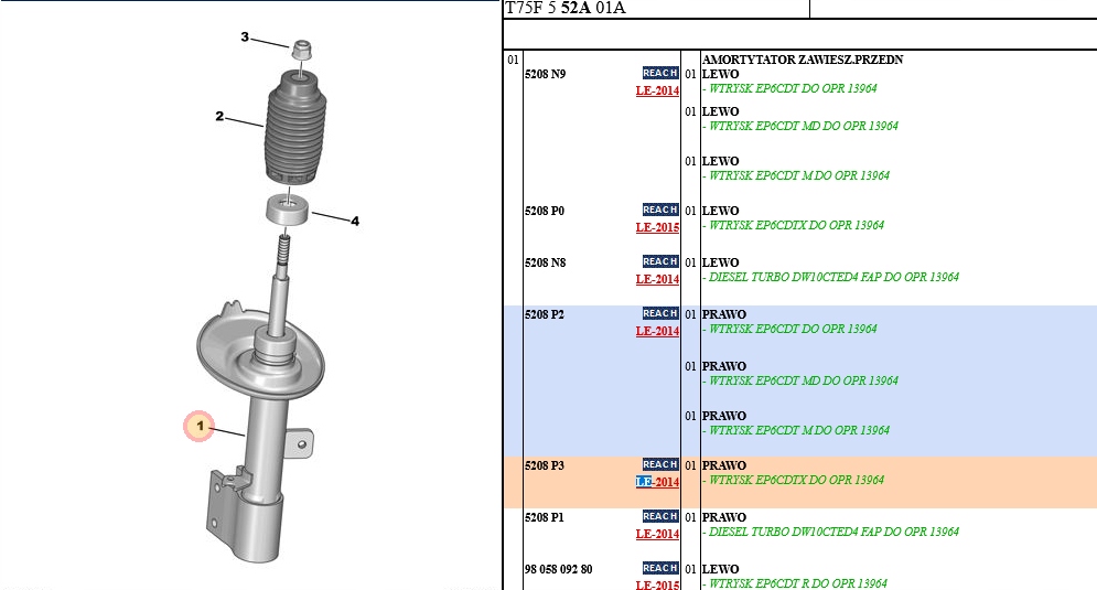 передний прав амортизатор пневматический Пежо rcz oe 5208p3