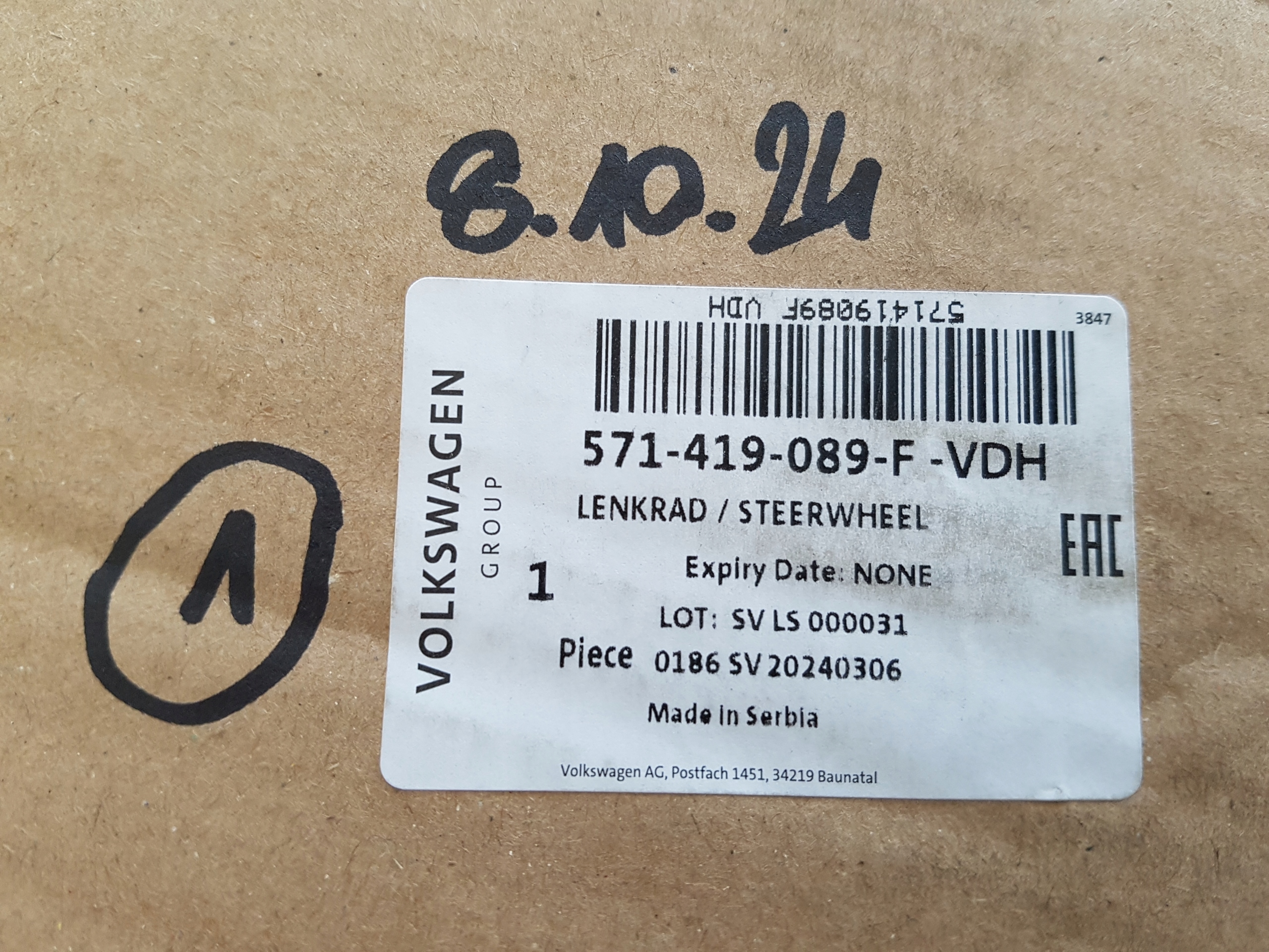руль кожа vw Tiguan III 571 571419089F новый оригинал