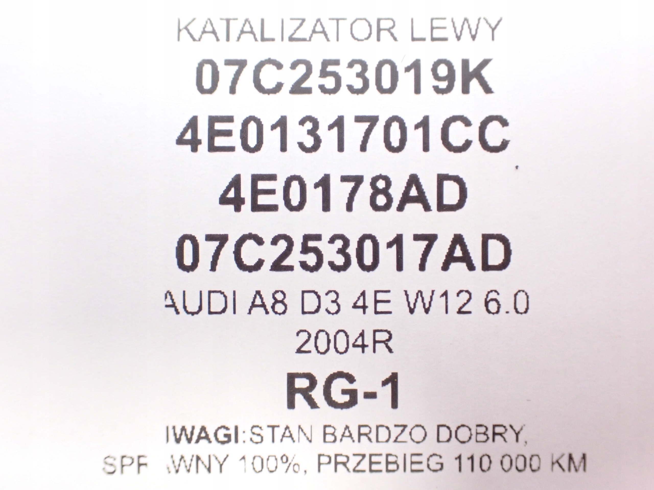 07C253019K катализатор левый коллектор A8 D3 W12