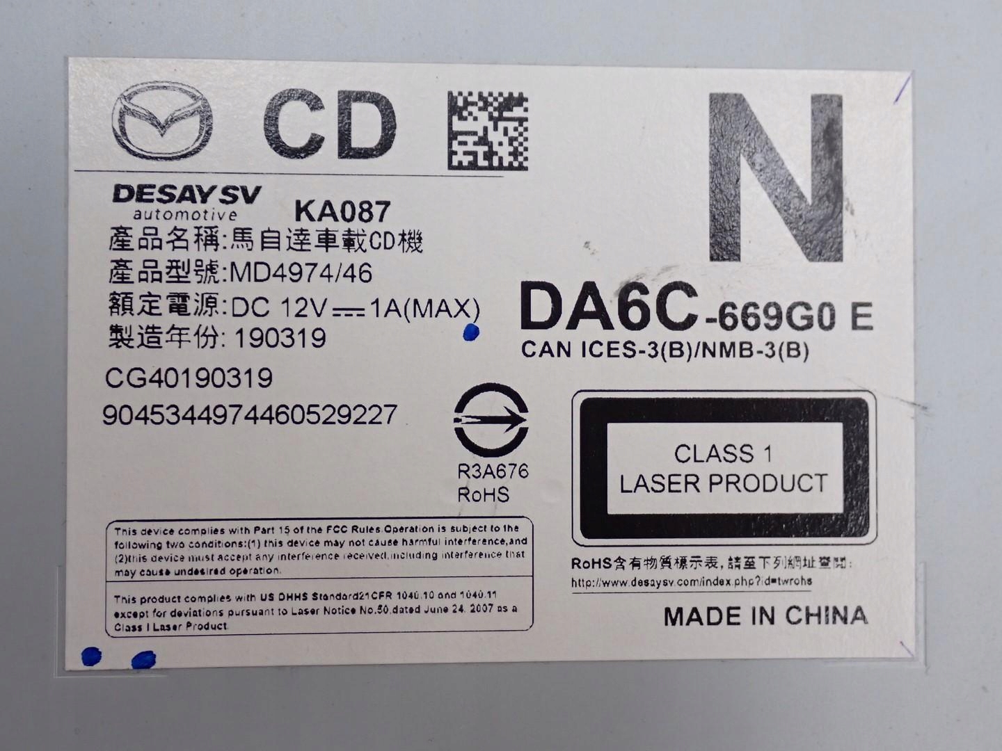 NAVI радио оригинал BAAR669C0 mazda CX3 19R