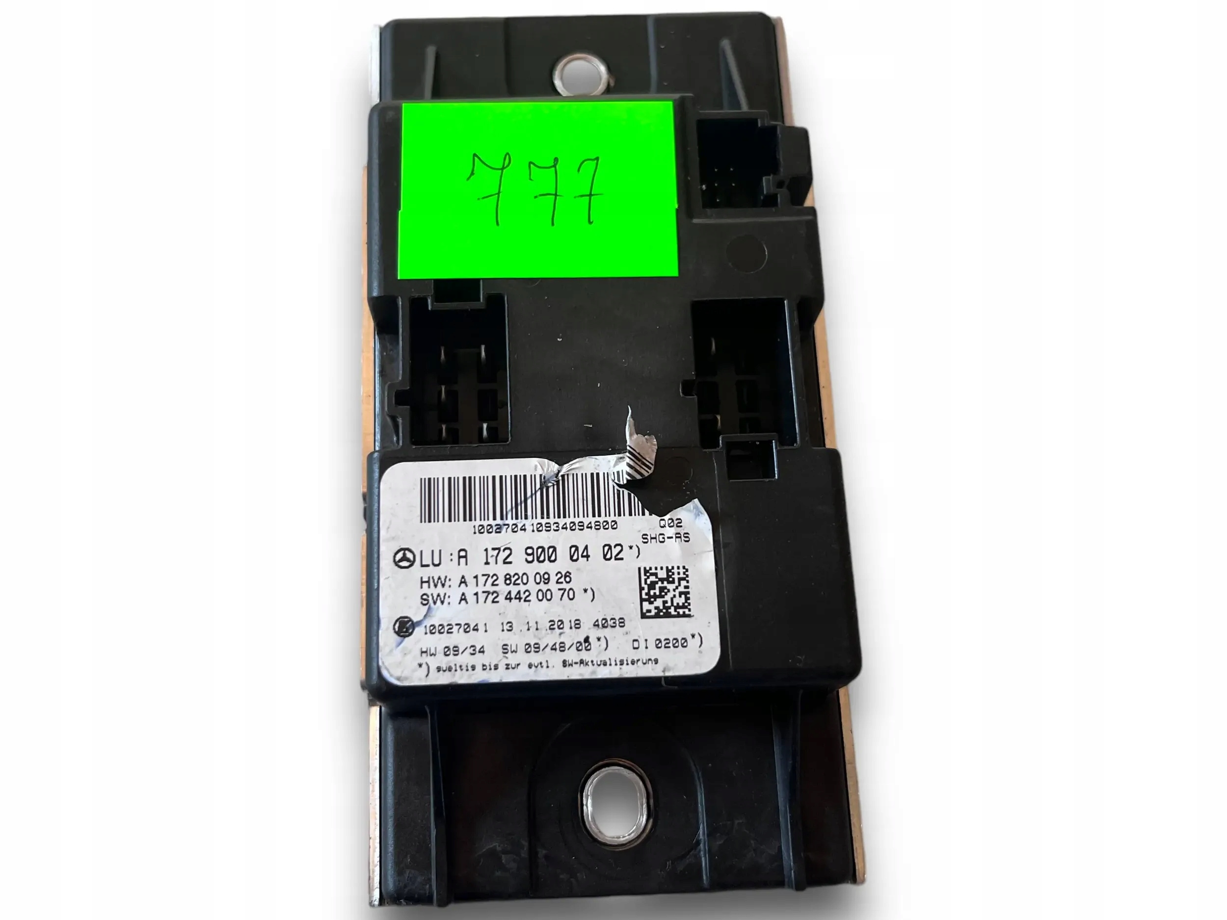 ZAPZA — уникальный маркетплейс запчастей автотоваров и услуг для физ и юр лиц. В каталоге маркетплейса ZAPZA представлены новые, б/у и восстановленные автозапчасти, для всех типов транспорта. Автодеталь MERCEDES R172 блок управления 1729000402 после демонтажа прошла проверку и готова к дальнейшей эксплуатации.