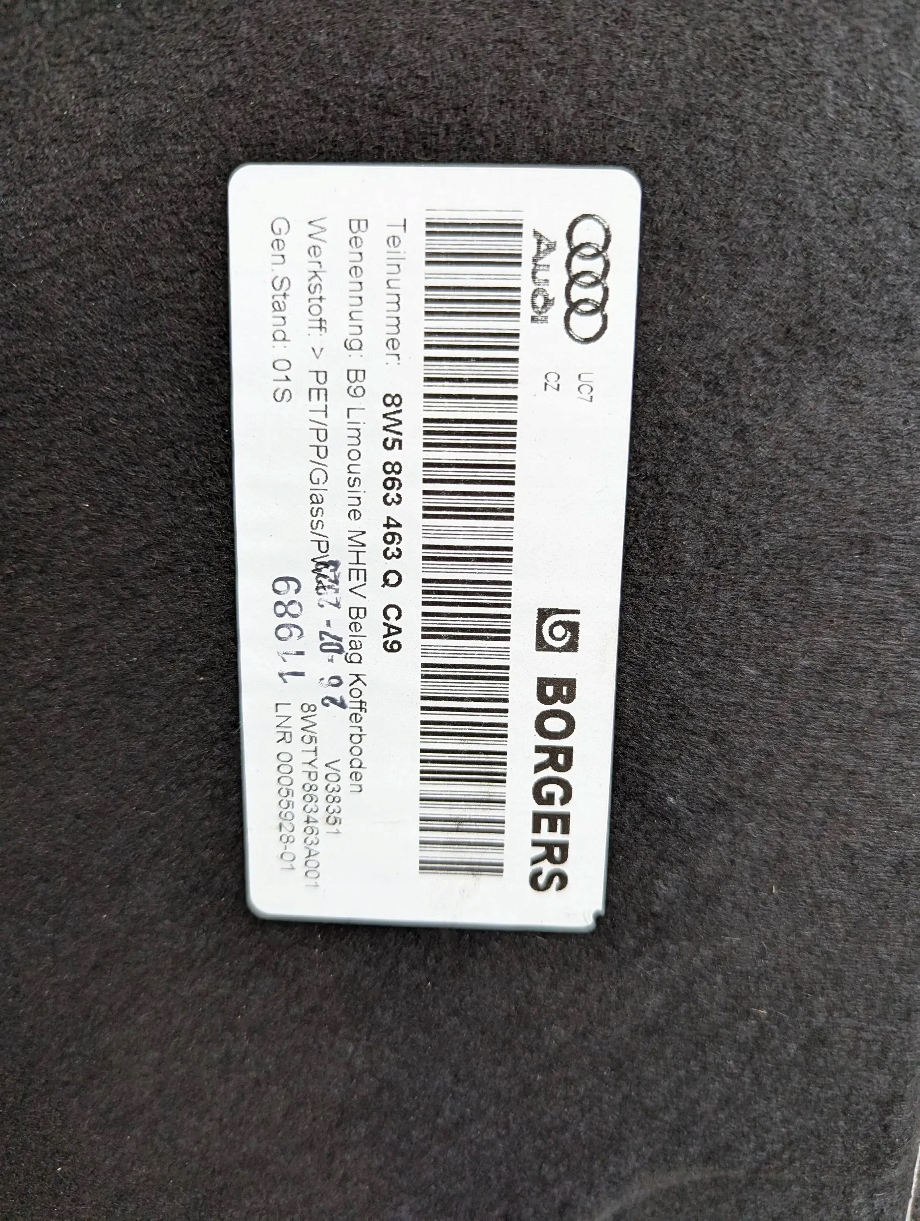 ZAPZA — уникальный маркетплейс запчастей автотоваров и услуг для физ и юр лиц. В каталоге маркетплейса ZAPZA представлены новые, б/у и восстановленные автозапчасти, для всех типов транспорта. Автодеталь Audi A4 B9 8W5 2019-2024 седан багажника после демонтажа прошла проверку и готова к дальнейшей эксплуатации.