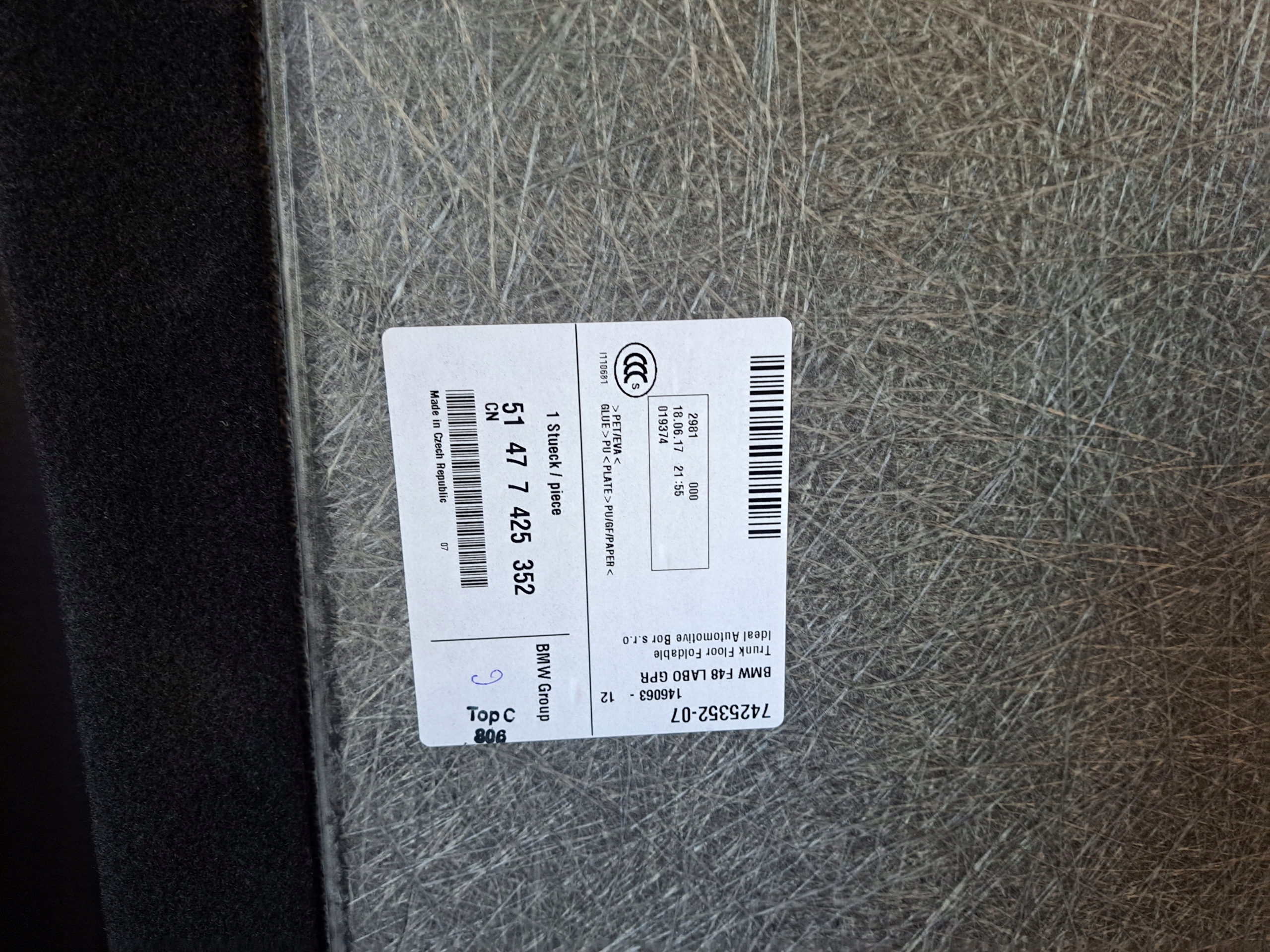 BMW X1 F48 ковер обивка багажника 7425352