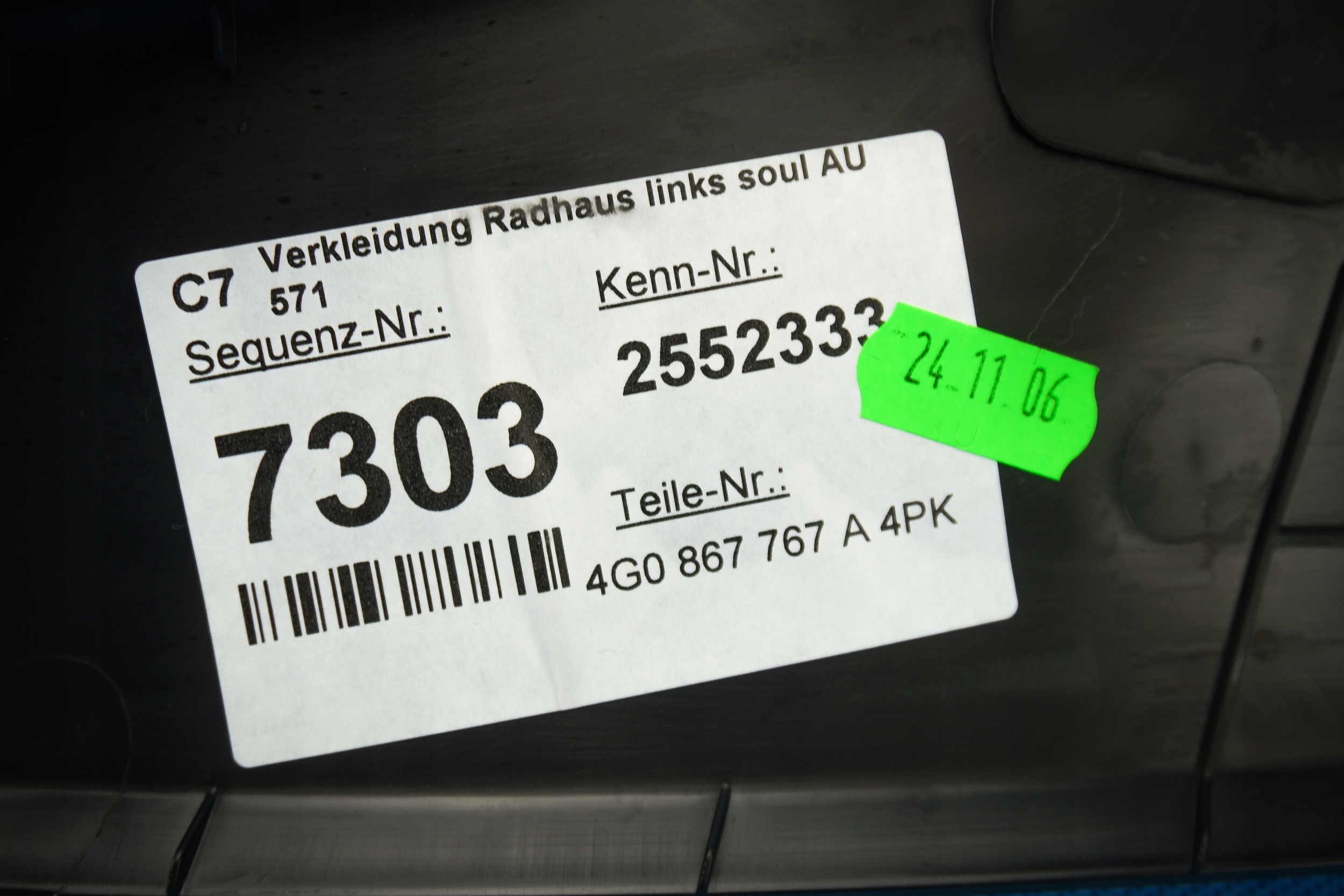 защита обшивка Audi A6 S6 RS6 4G C7 4G0867767A 4PK