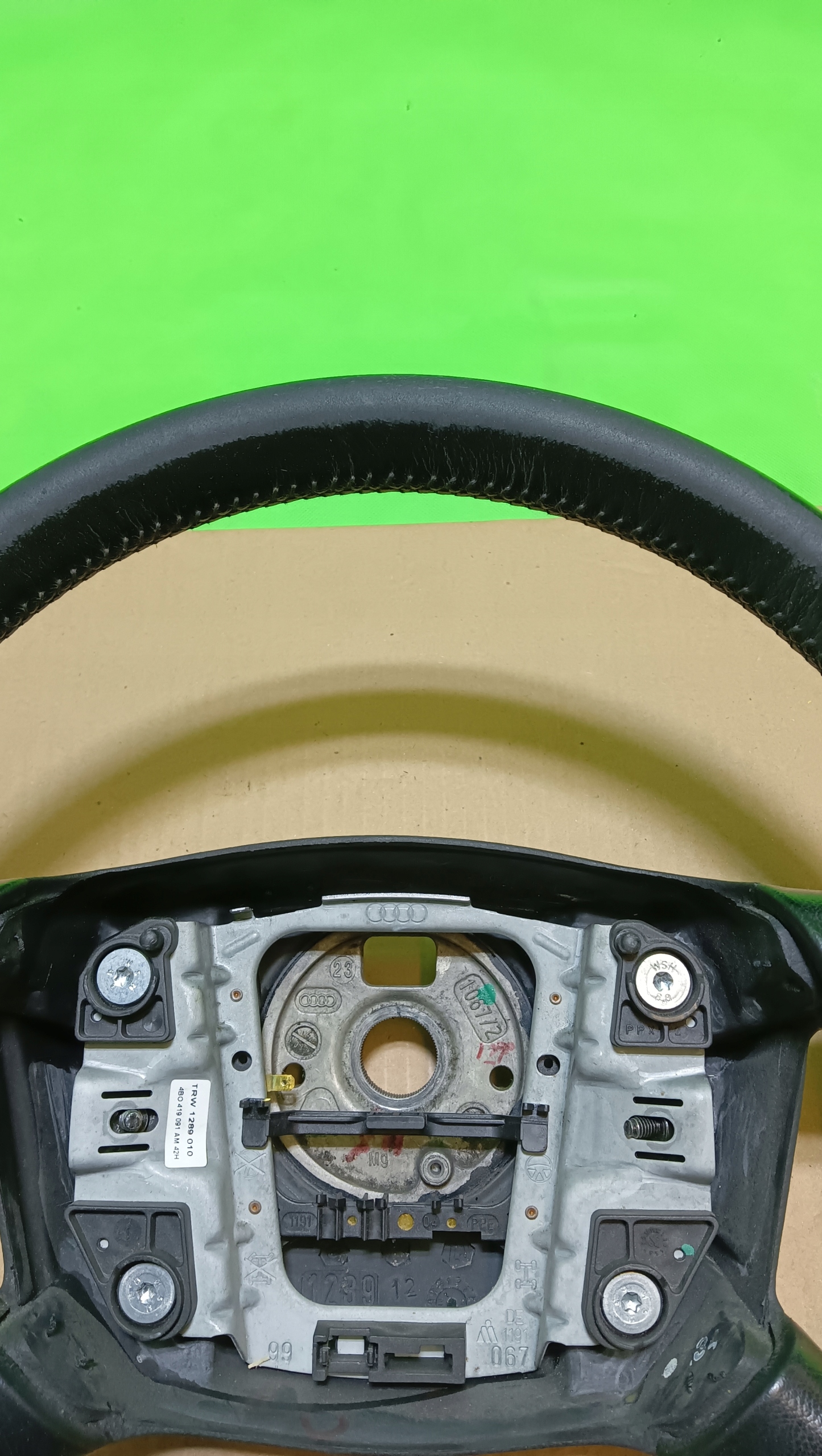 ZAPZA — уникальный маркетплейс запчастей автотоваров и услуг для физ и юр лиц. В каталоге маркетплейса ZAPZA представлены новые, б/у и восстановленные автозапчасти, для всех типов транспорта. Автодеталь руль кожа Audi OE 4B0419091AM после демонтажа прошла проверку и готова к дальнейшей эксплуатации.