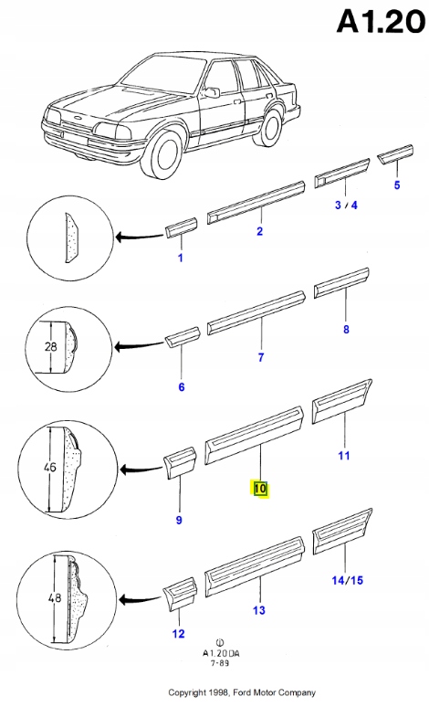 молдинг правый передний FORD 1986-1990 (DA) oe 1648001