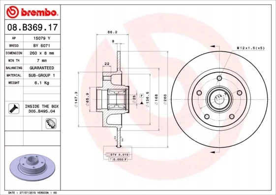 2× Brembo 08.B369.17 тормозной диск P 68 041 комплект датчик износа тормозных колодок, тормоз