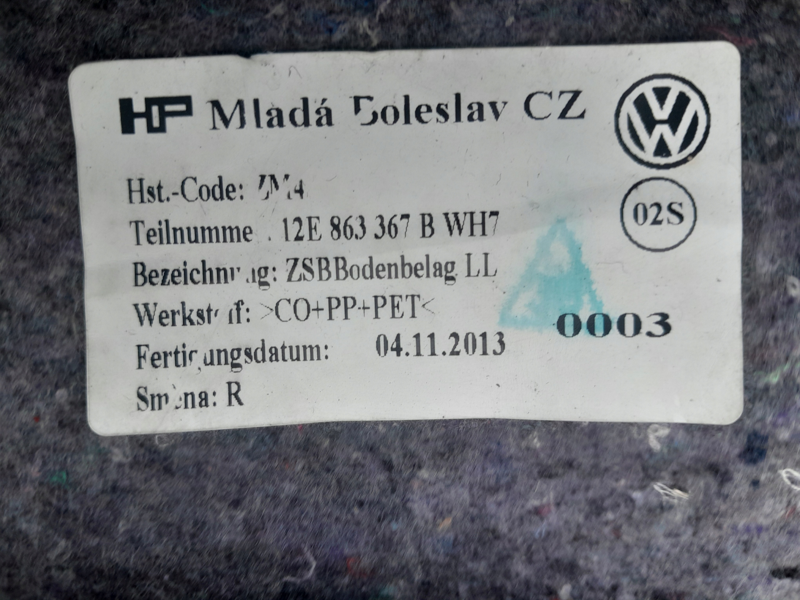 vw 12E863367A ,12E863367B ковер 5 Двери