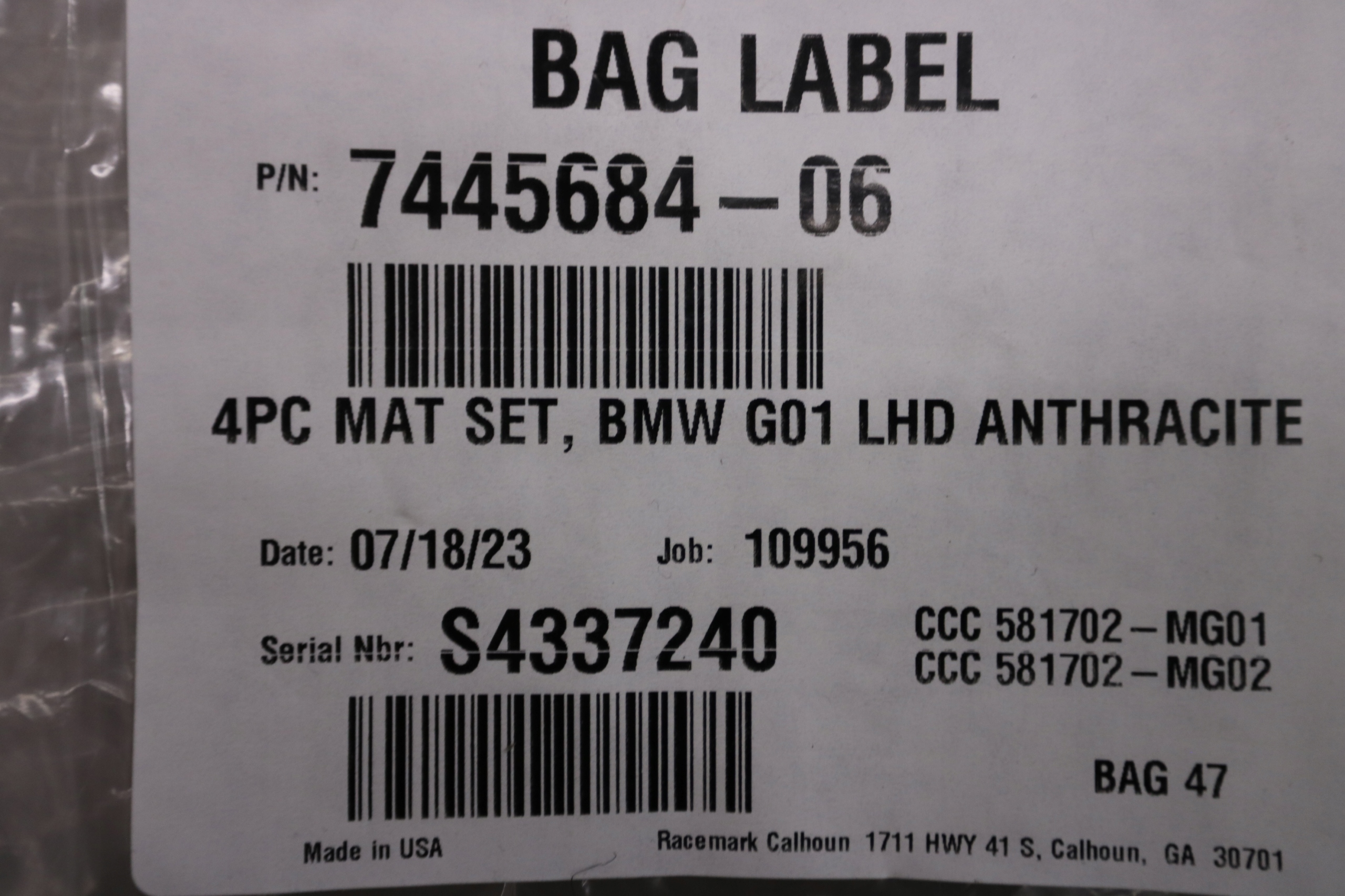 BMW X3 G01 X4 G02 оригинал Коврики европа комплект 7445684