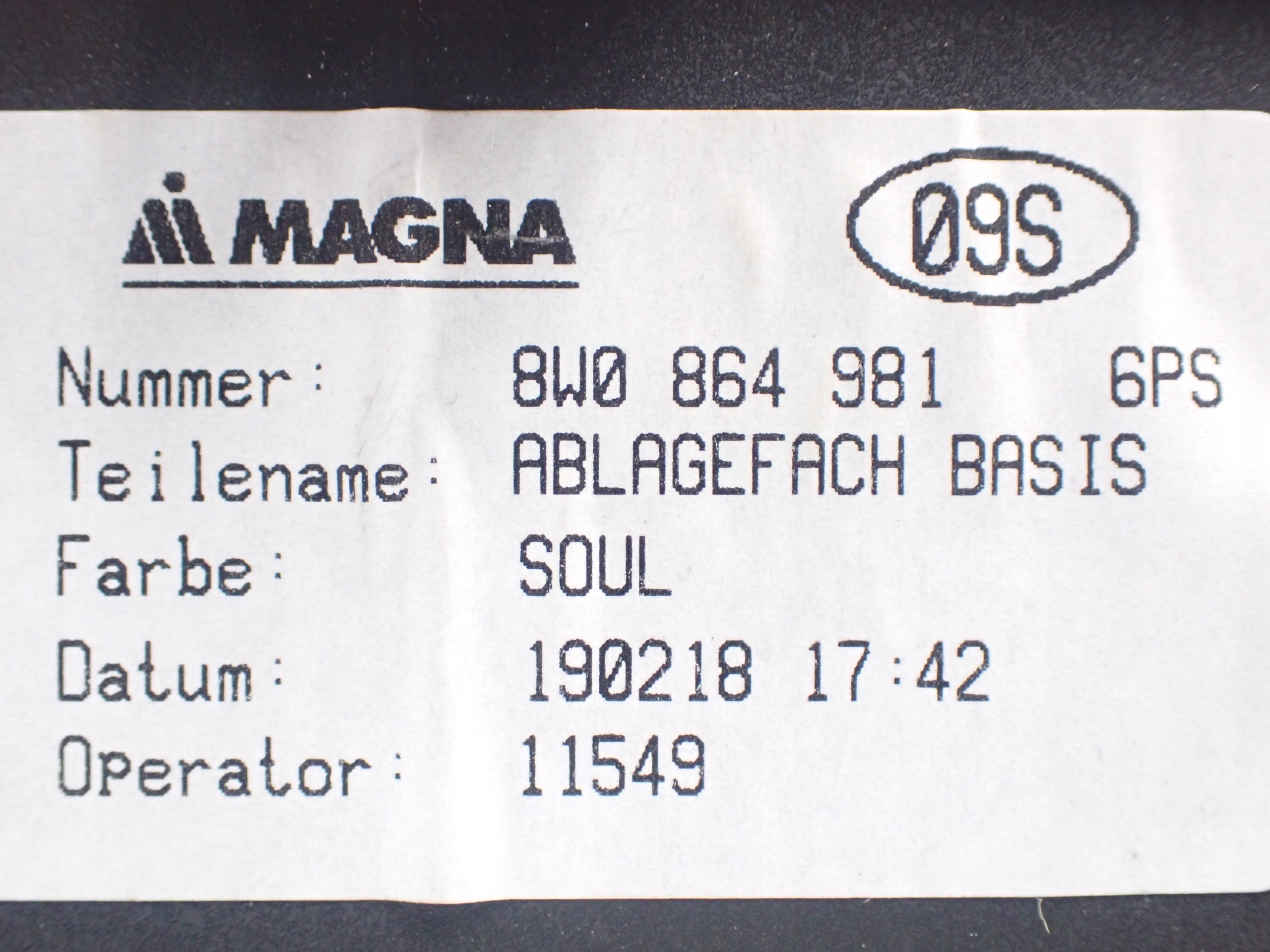 8W0864981 6PS бардачок полка консоль A5 S5 F5 8W B9