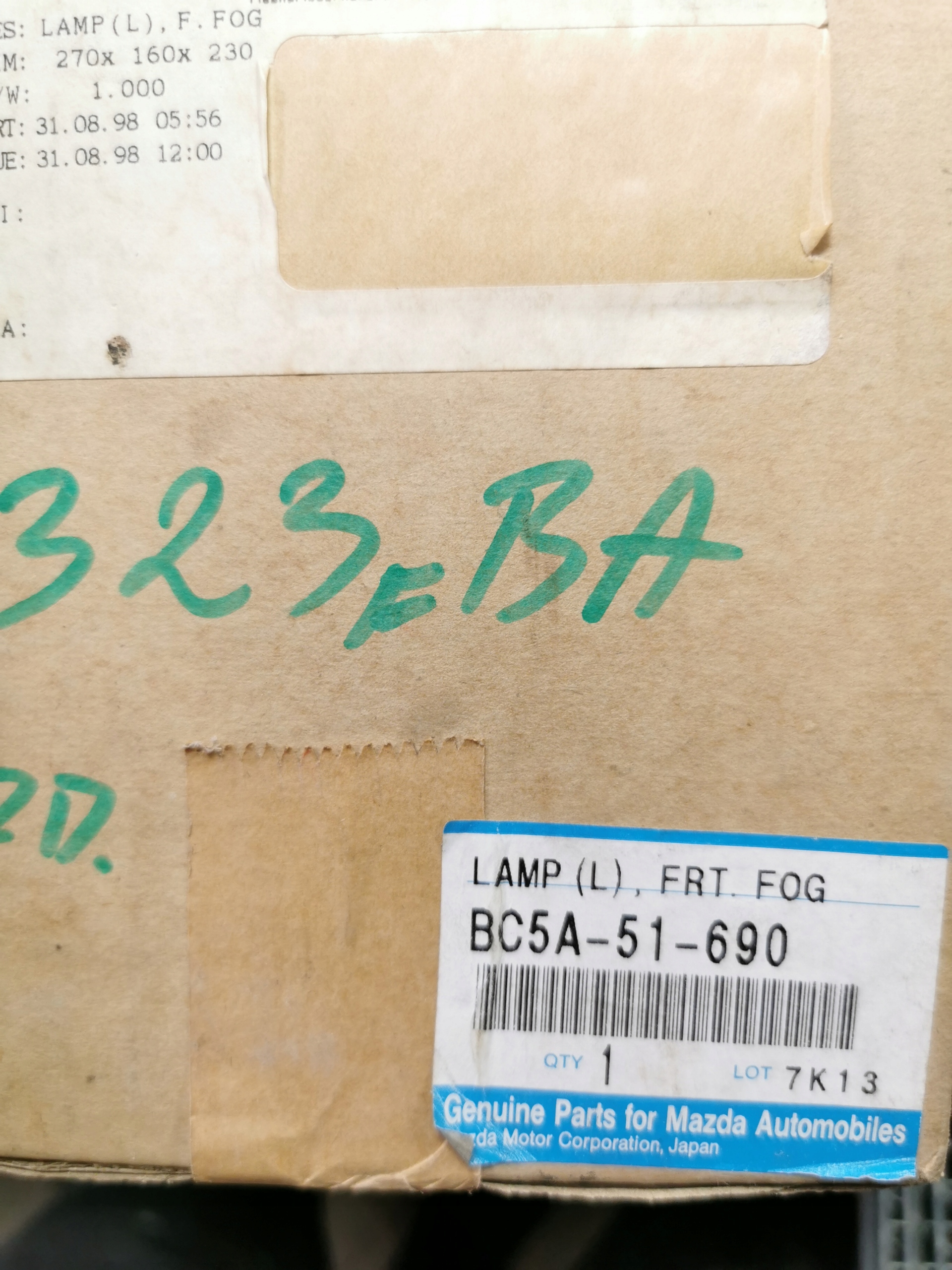 противотуманная передний левый mazda 323 s V 1994- oe BC5A-51-690