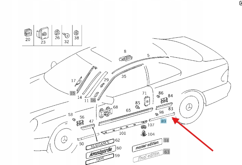 прокладка порога молдинг MERCEDES W208 зад