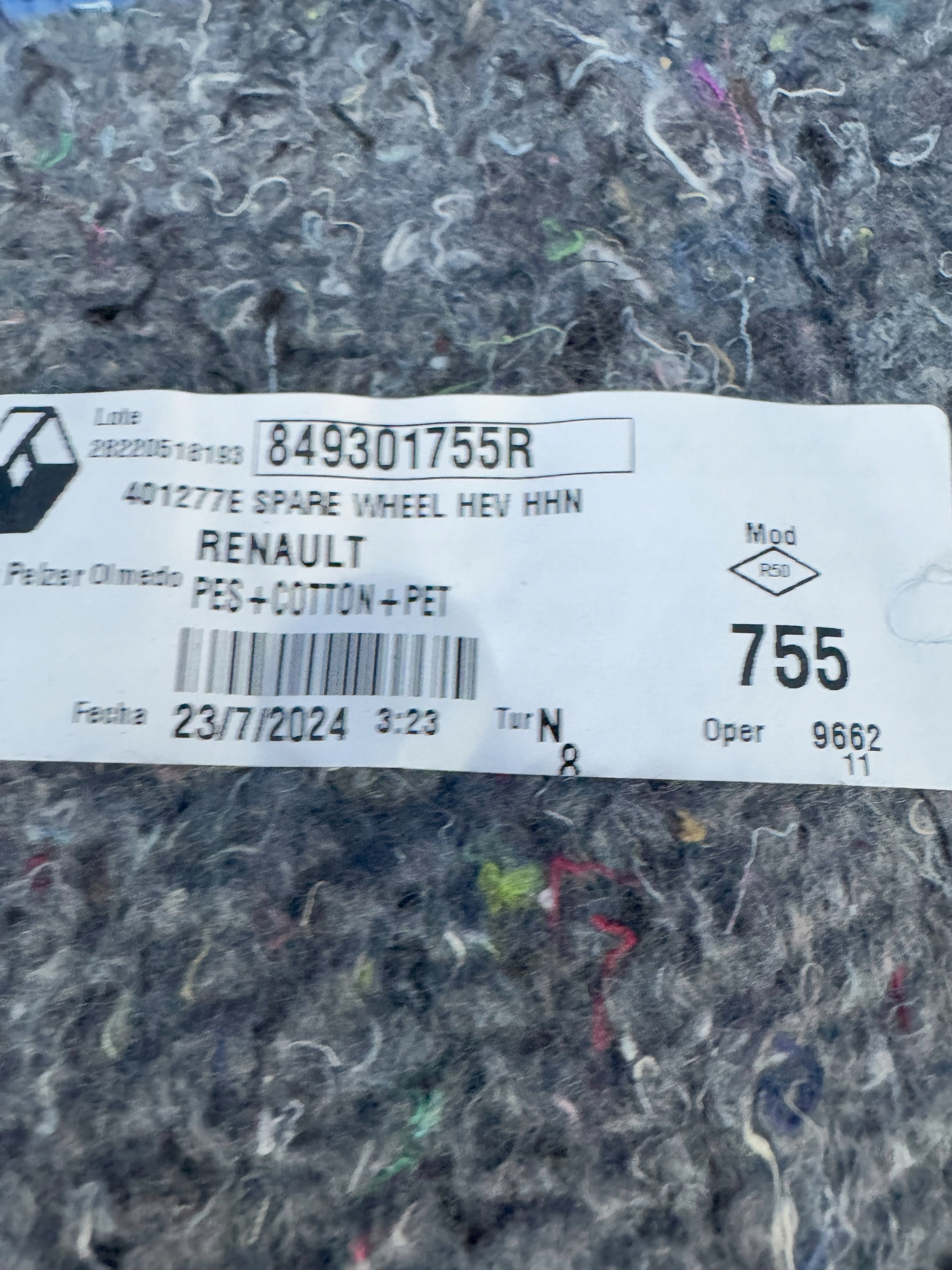 вклад багажника renault AUSTRAL 1.2 E-TECH 849301755R