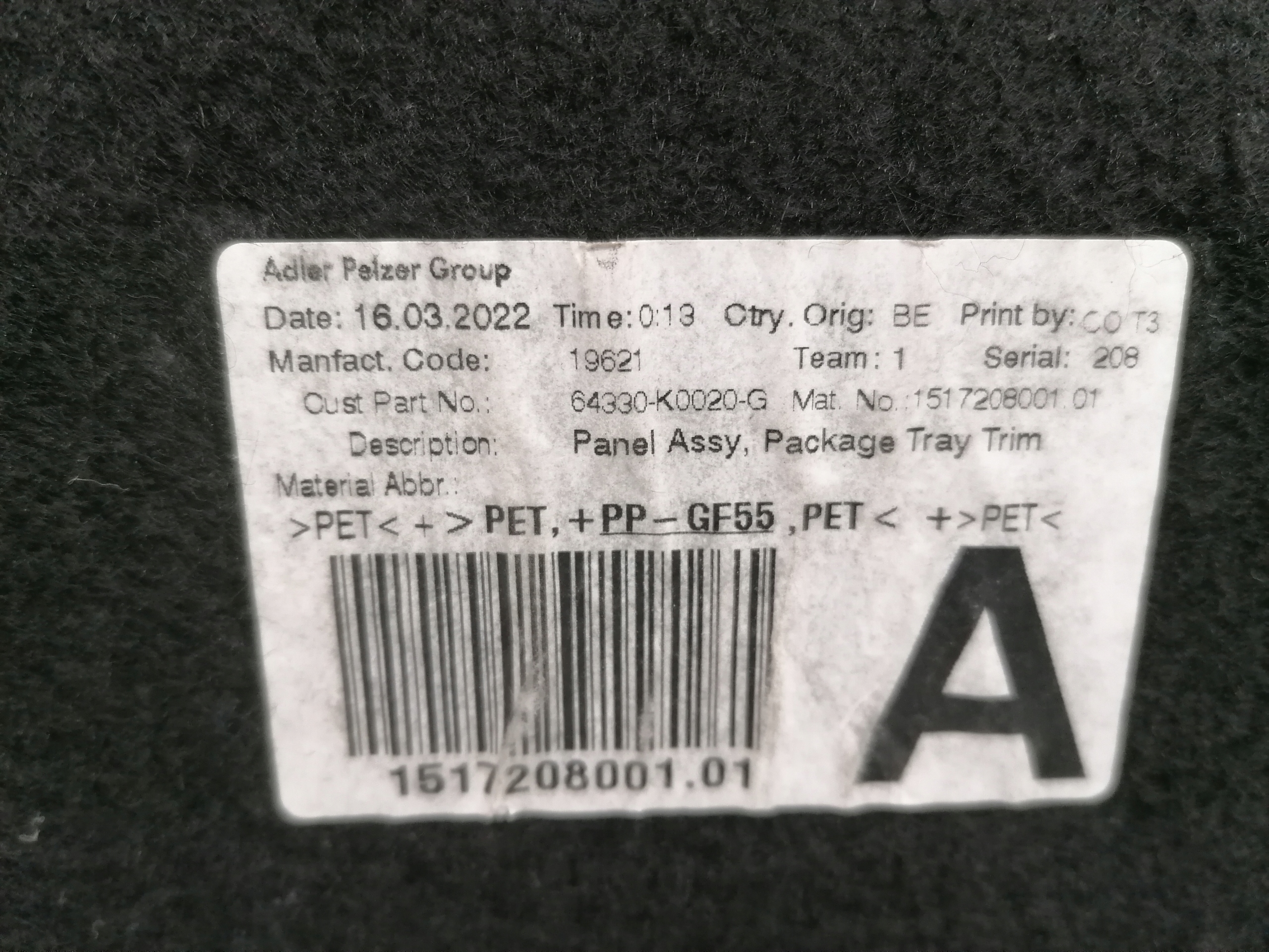 номер детали: 64330-K0020-G-ORYG(552)