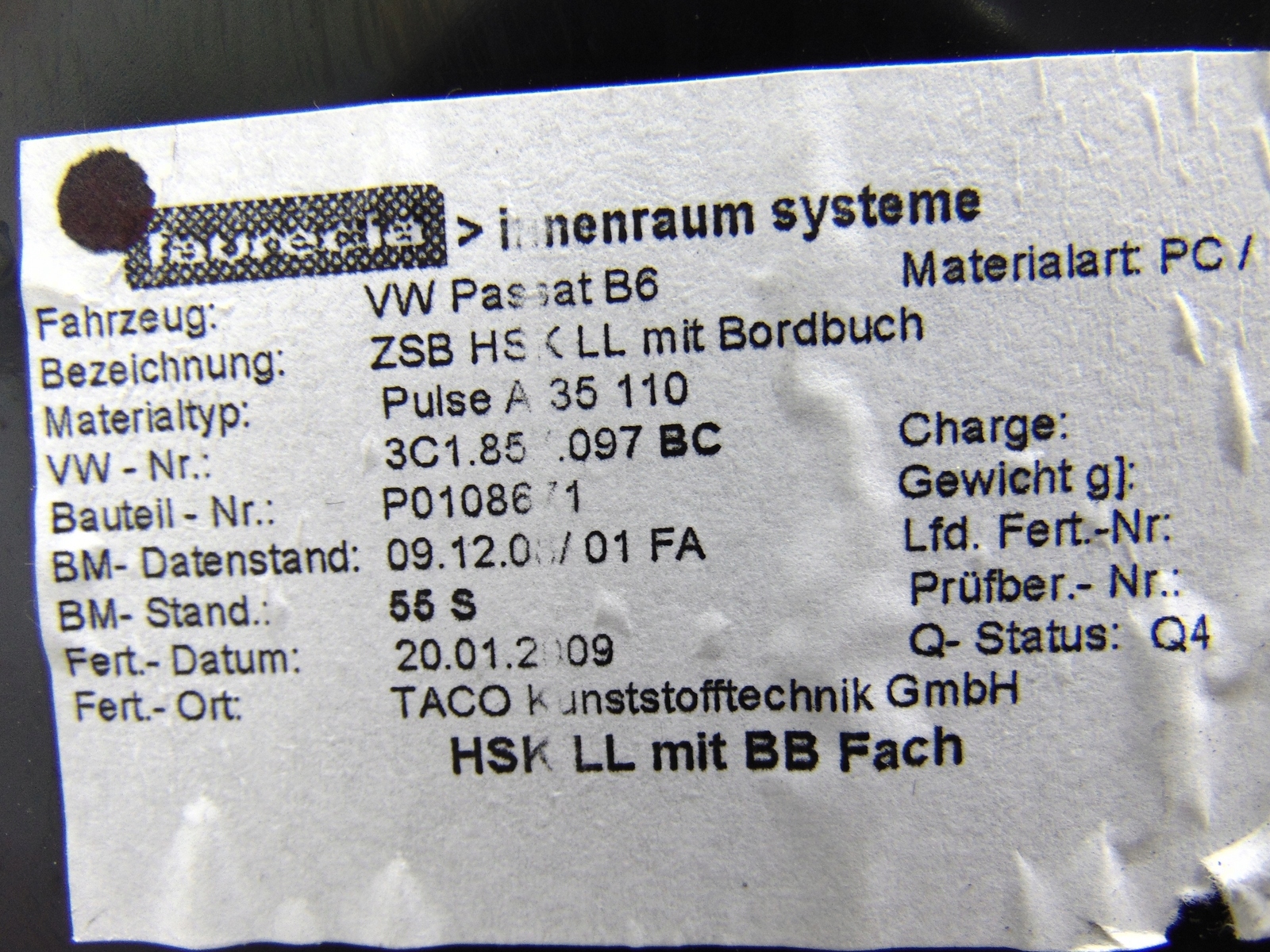 бардачок пассажира 3C1857097BC vw Passat CC европа
