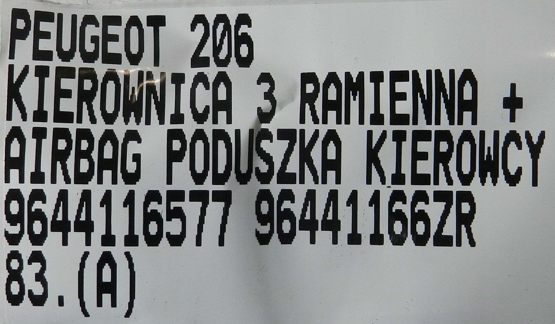 peugeot 206 руль кожа подушка подушки безопасности 9644116577 96441166ZR