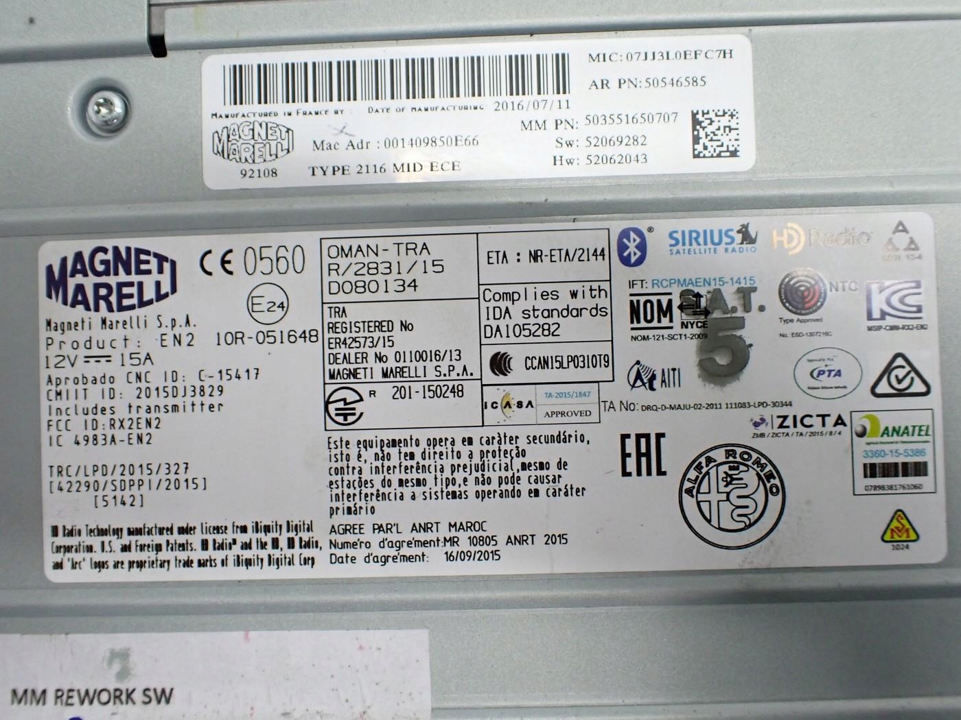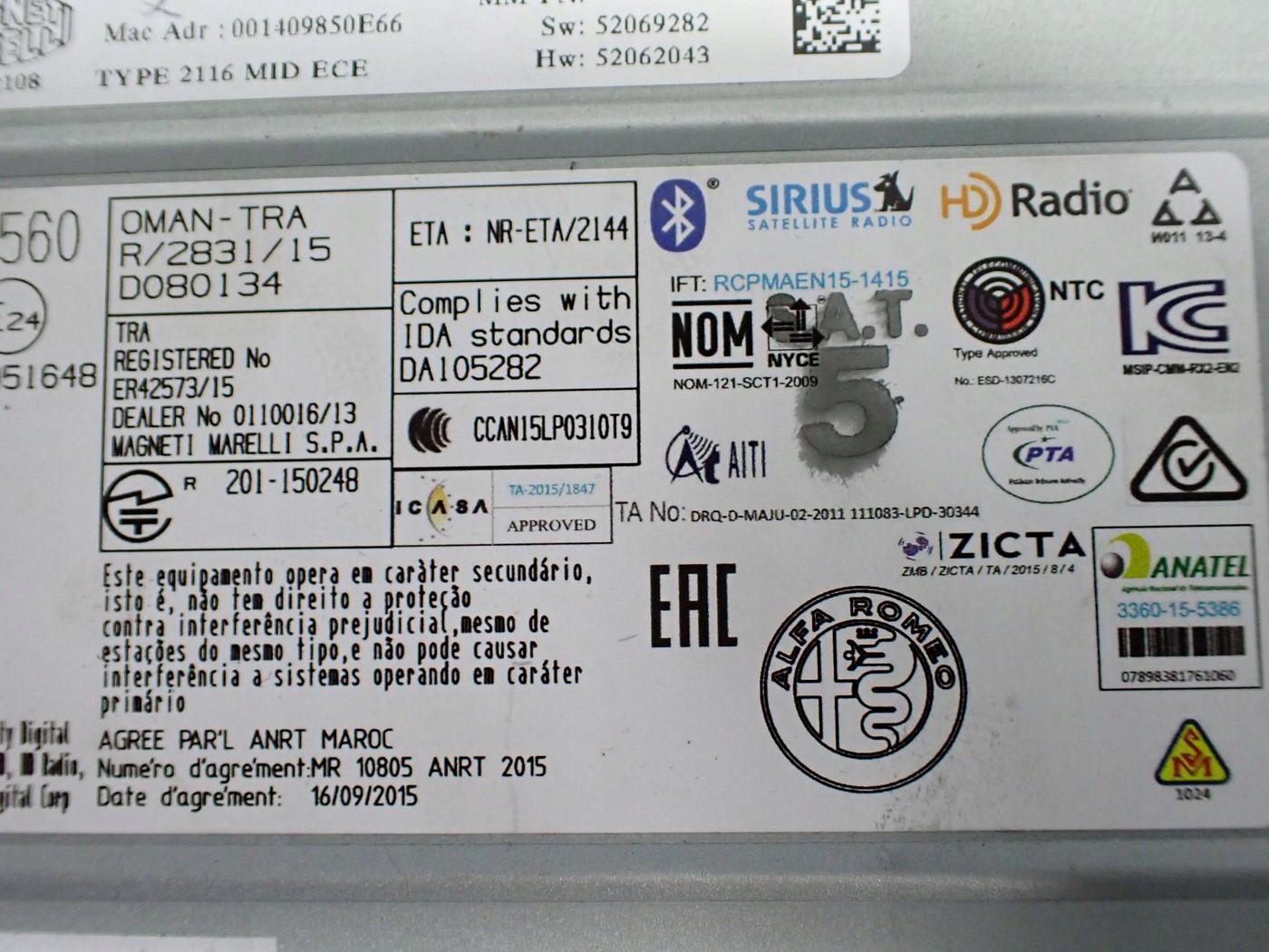 NAVI радио оригинал 50546585 ALFA ROMEO GIULIA 16R